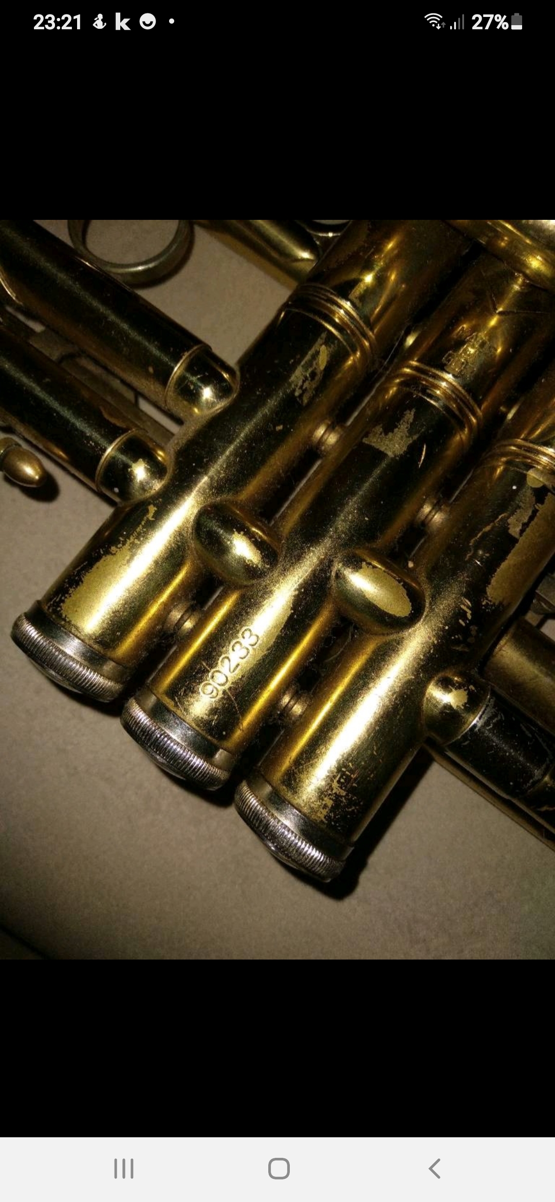 Hallo Mario Weller, hier noch ein Foto zu einer B&S, leider ist die Nemmer eigentlich nicht mehr lesbar ... Sie ist unlackiert, etwa aus 1974 oder 1975 ... am Mundrohr findet sich die Gravur Exquisit, an der Maschine findet sich: T 773. Trigger am 3. Ventil Vielleicht gibt es noch Infos zu dieser Tr...