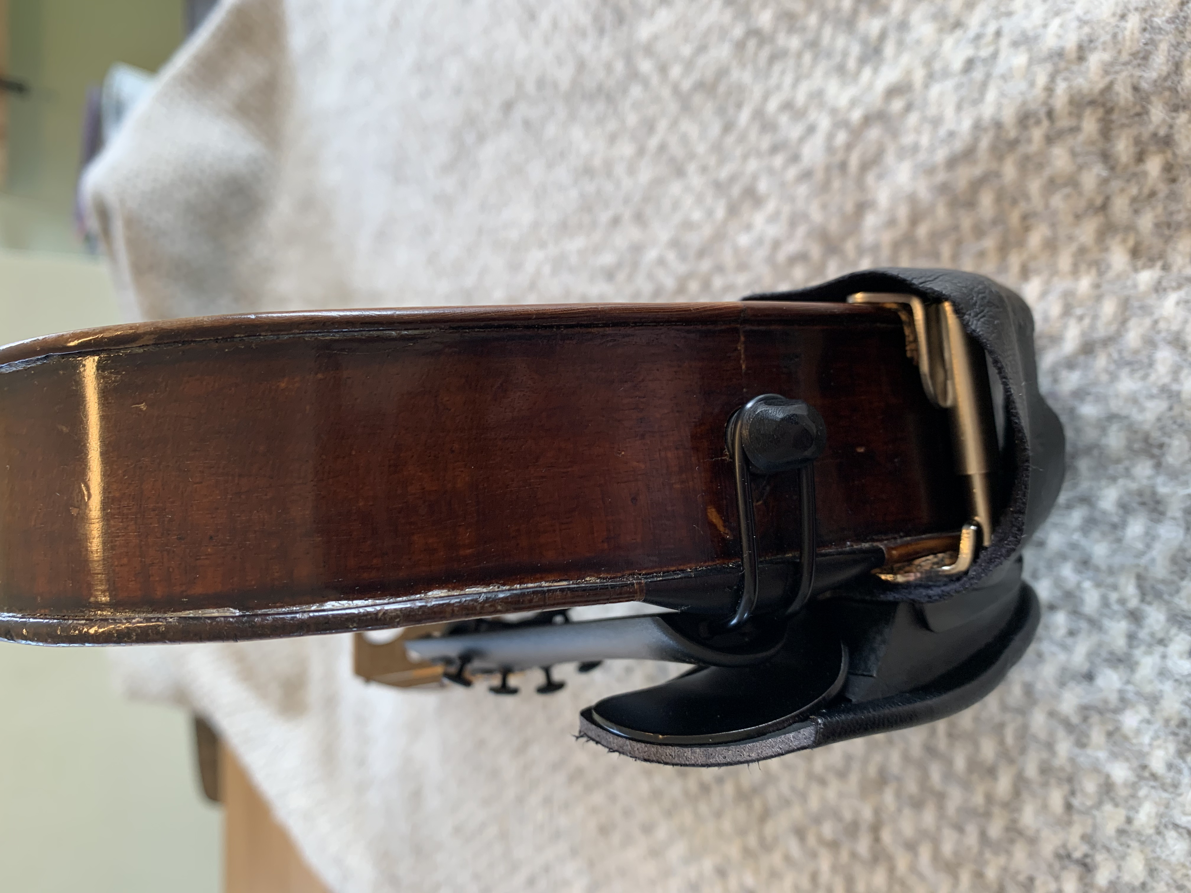 Ich habe sie in diesem Zustand von einem Musikstudenten erworben. Der Klang überzeugt meine Geigenlehrerin wenn sie spielt sehr.