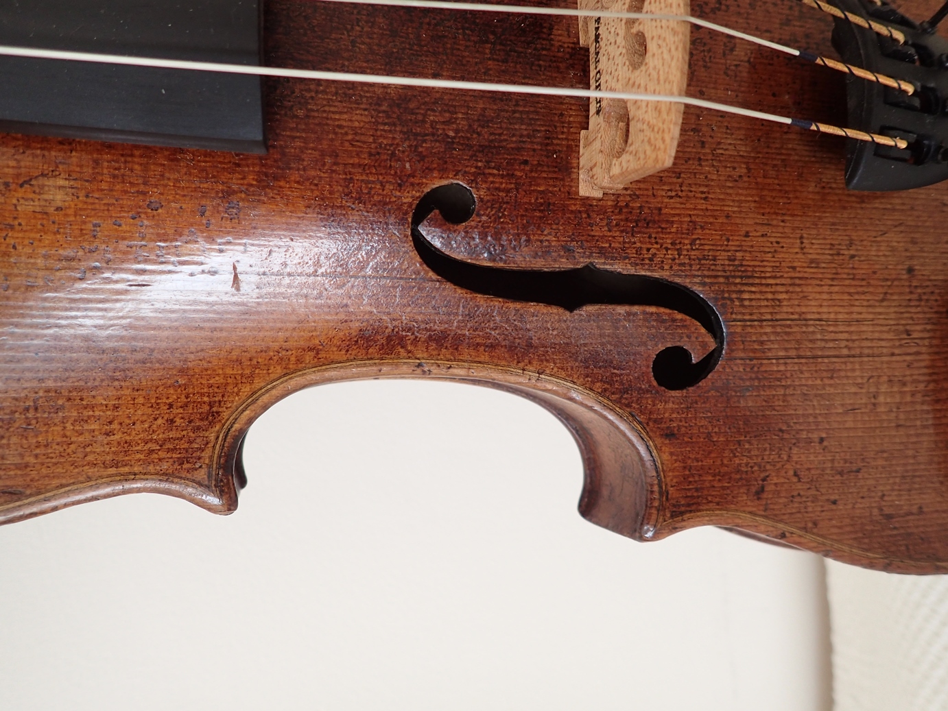 Some physical attributes of this violin indicate that this instrument was probably made in Markneukirchen, end 19th century.
