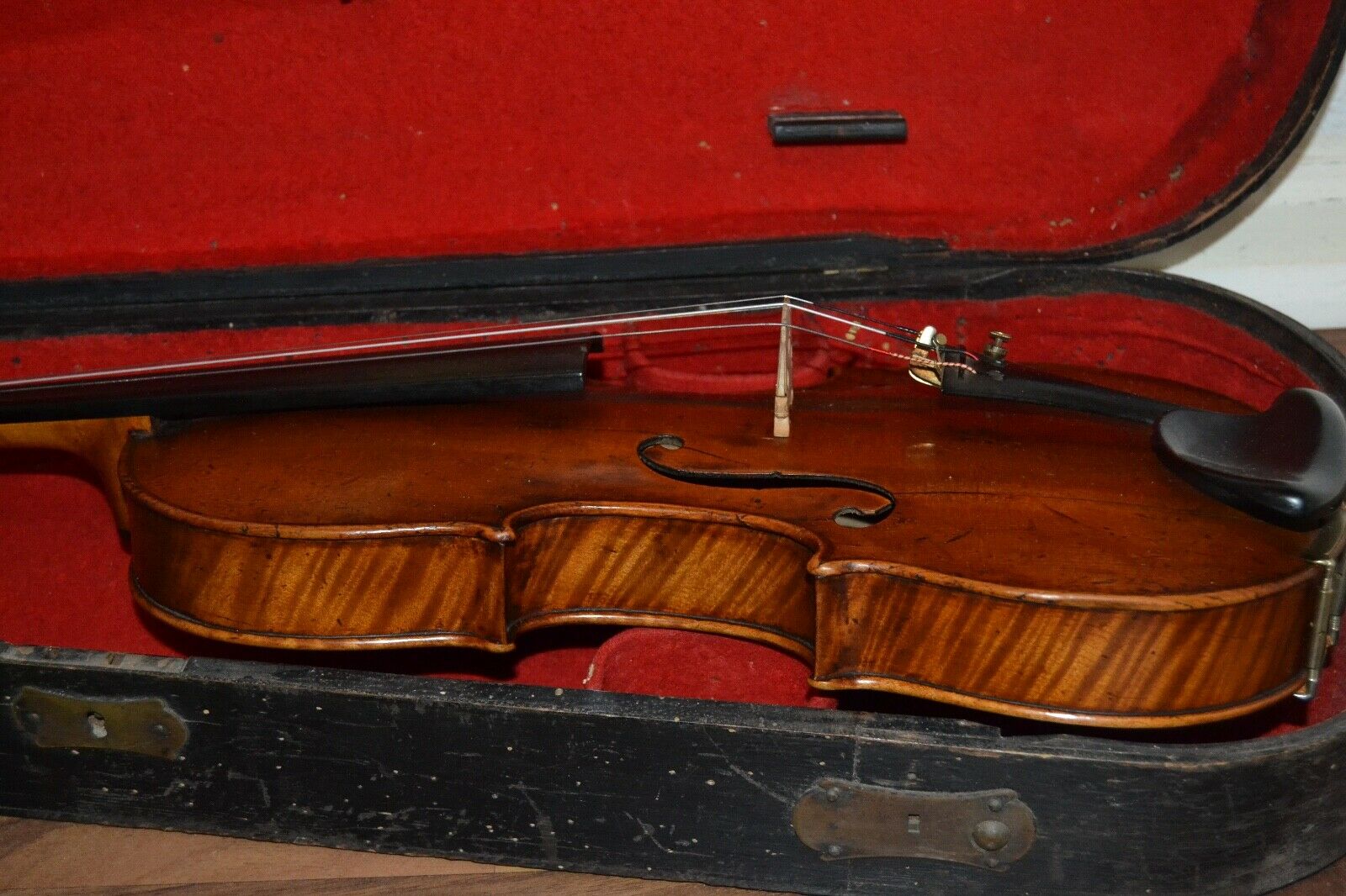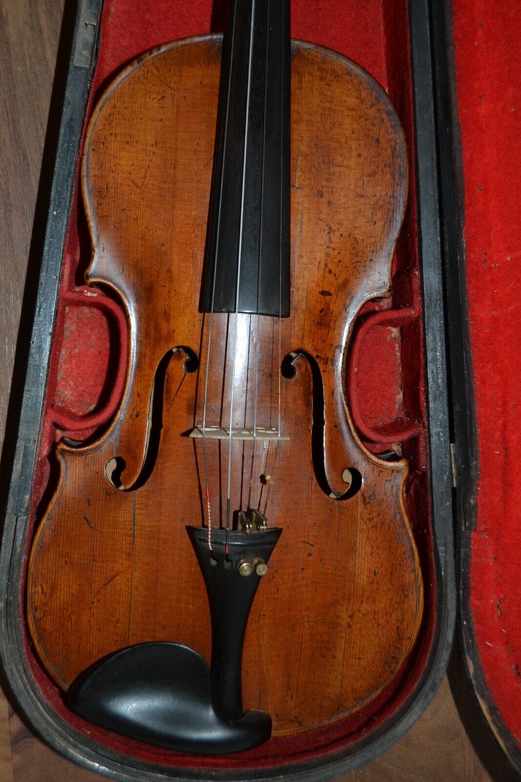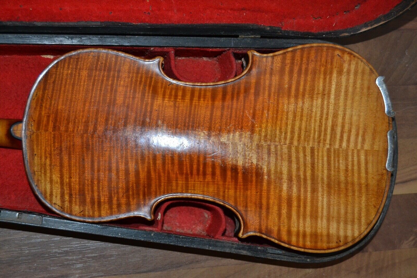 Ich habe hier eine Violine, die 1893 von einem lokalen Instrumentenmacher und Musiklehrer in Anklam repariert wurde.