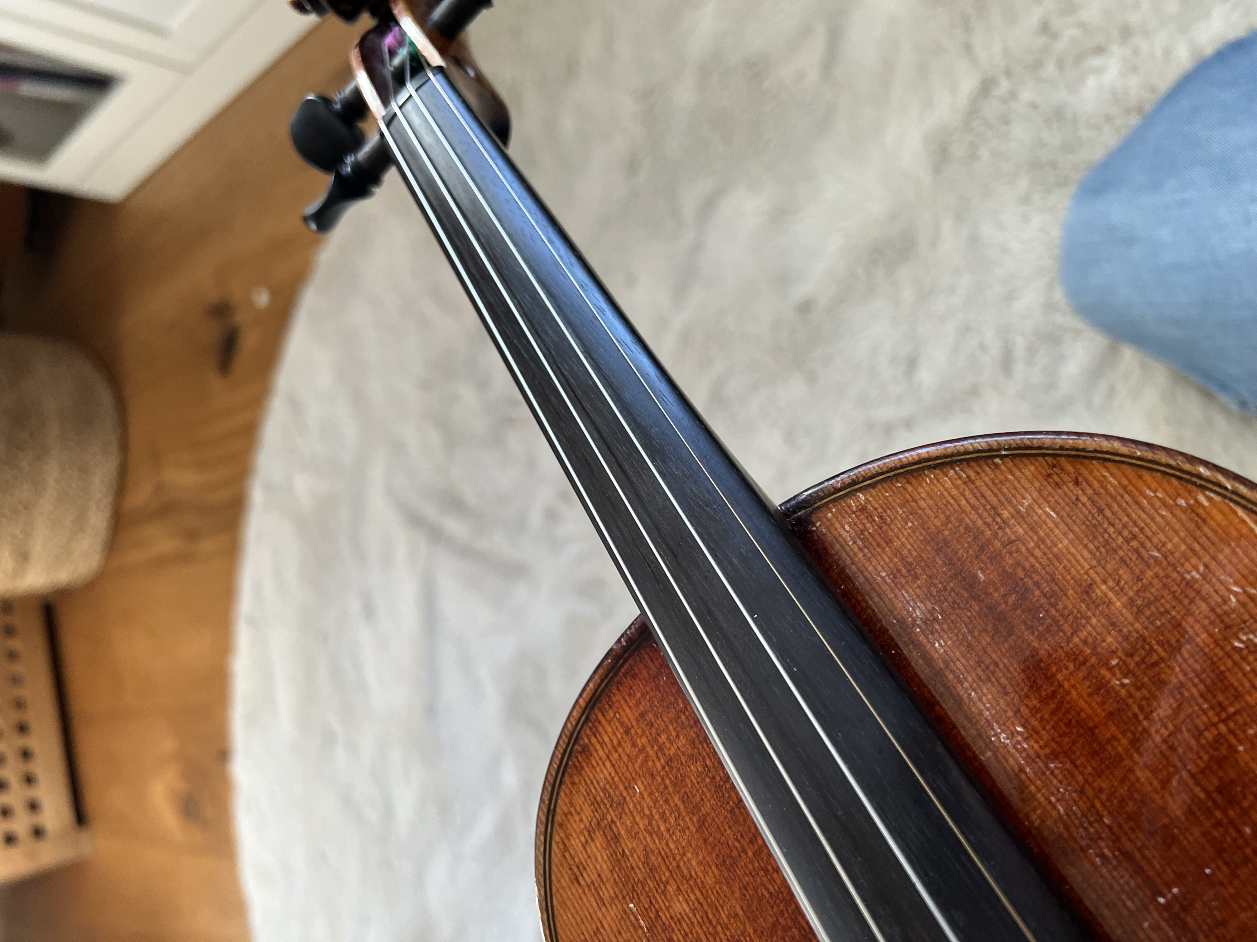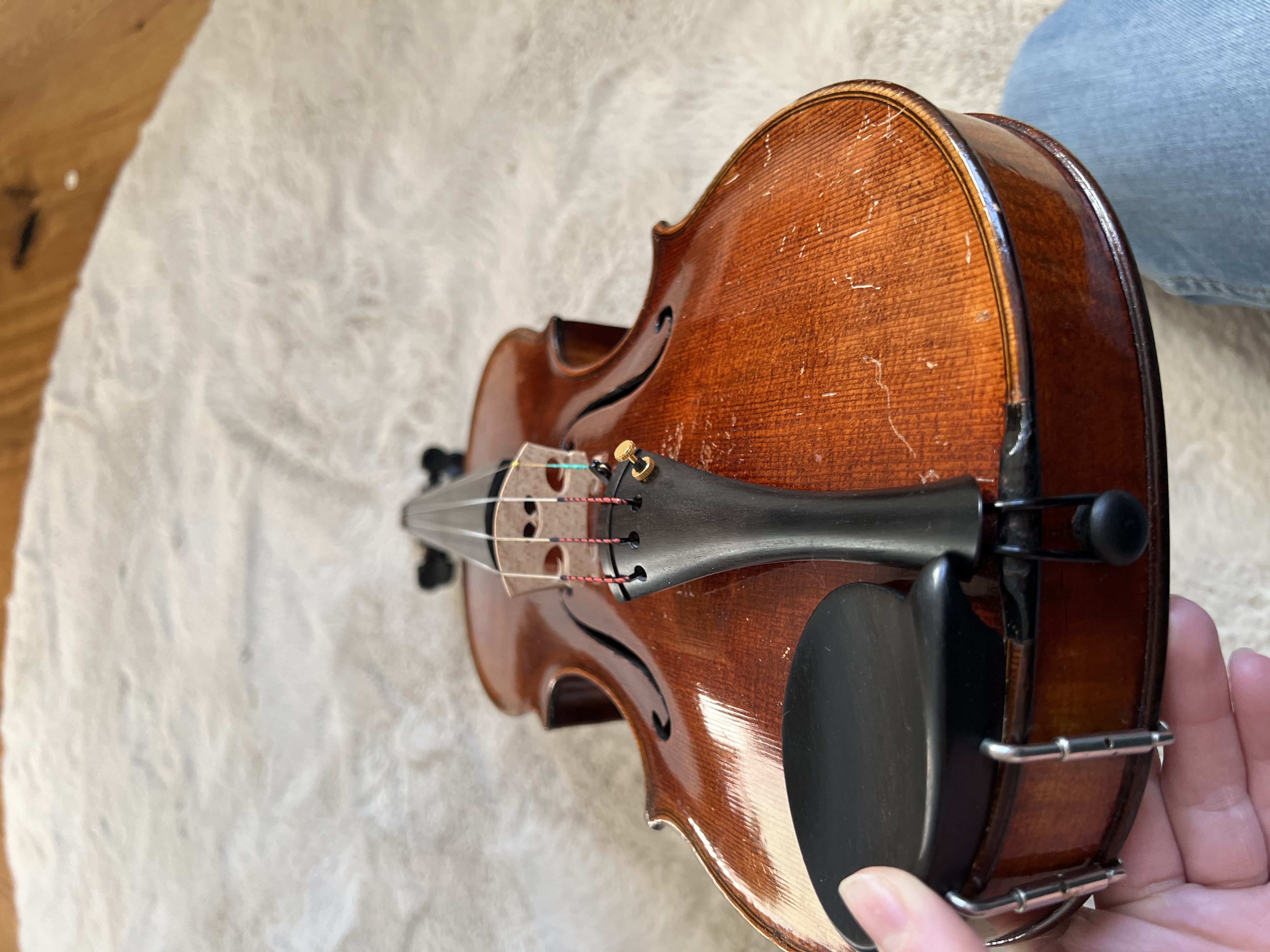 Sie ist nun seit 5 Jahren in meinem Besitz. Damals habe ich sie von der hiesigen Geigenbauerin wieder herrichten lassen.