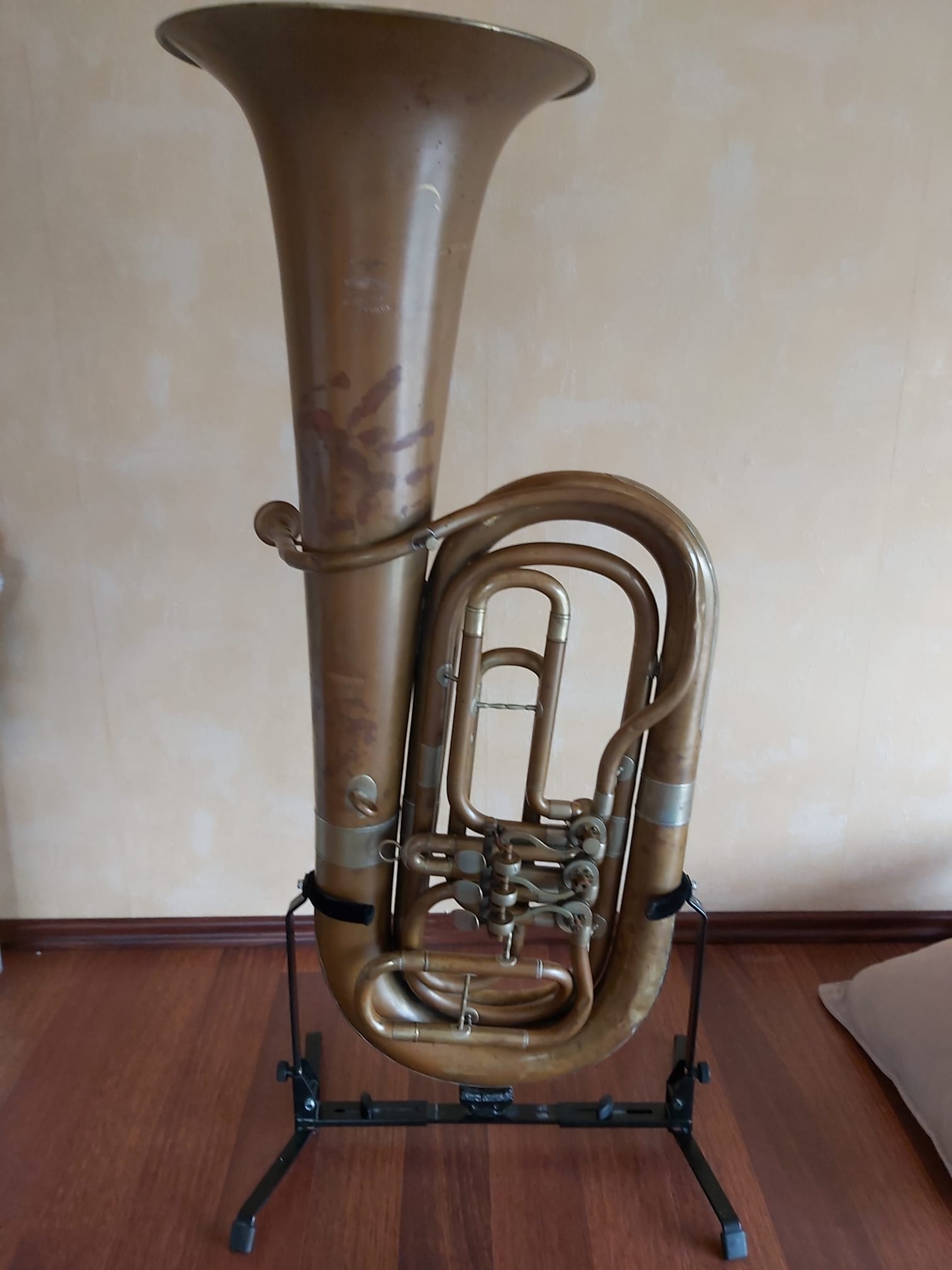 Hallo liebes Foren-Team, ich schreibe Sie an, weil ich mir ein paar Hinweise und Auskünfte zu einer kürzlich von mir mehr oder weniger zufällig erstandenen Tuba erhoffe. Dabei wäre mir eine zeitliche Einordnung hauptsächlich wichtig. Dass sich der Hersteller / die Manufaktur nicht klar ermitteln lässt, da Glier ja m.E.n. "nur" mit den Instrumenten gehandelt, nicht aber selbst gebaut hat, habe ich anderen Forenbeiträgen bereits entnommen. Erfreulich fände ich bereits, wenn Sie mir betätigen, dass es ein "besonderes" Stück ist ;-) und vlt. gibt es Erfahrungswerte zur Stimmung (Habe noch nicht die Hz gemessen) und dem Marktwert...