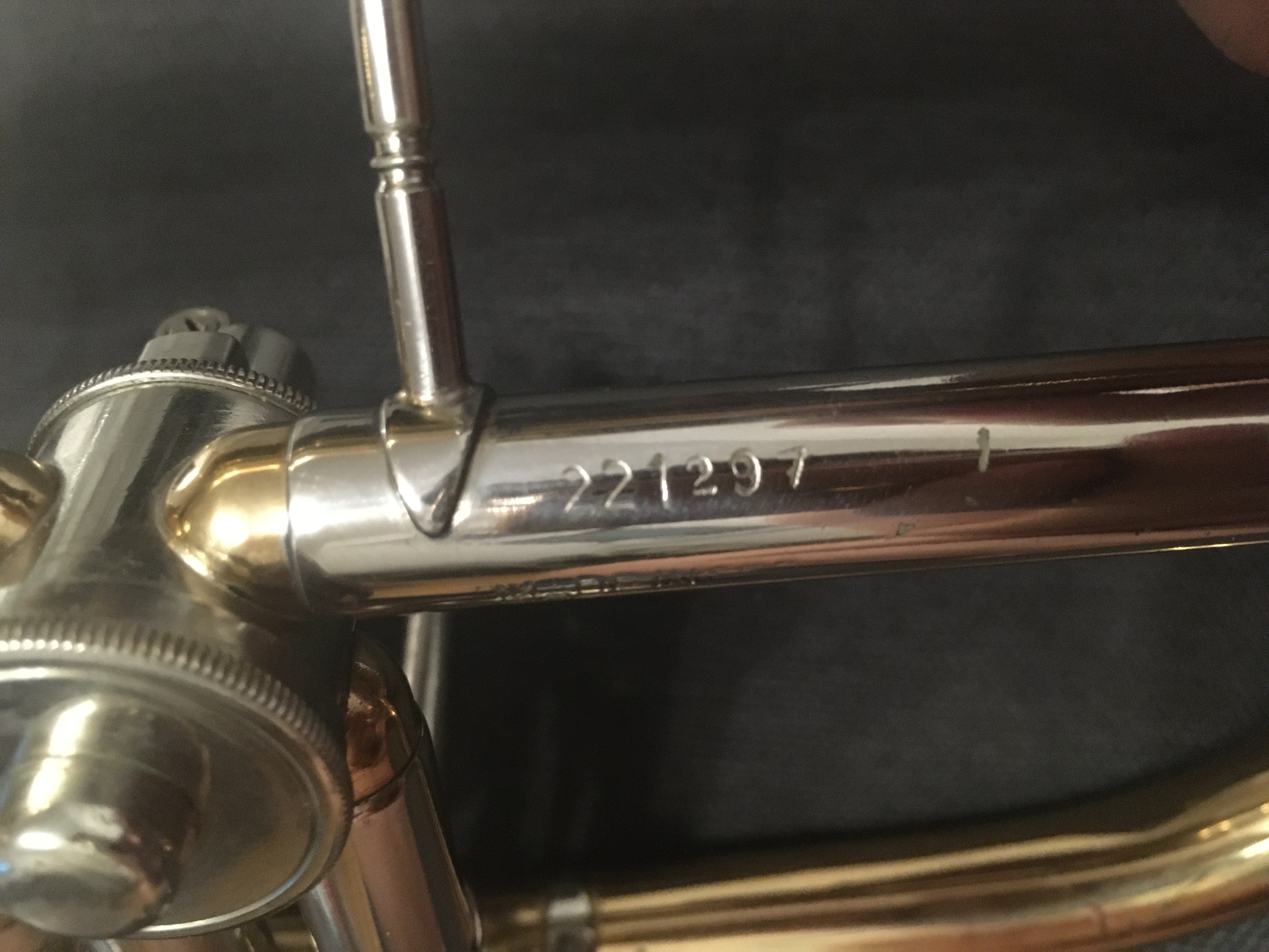 Ich habe schon viele Flügelhörner gespielt und so wie dieses hat mich bisher noch keines auf Anhieb begeistert. Es handelt sich um ein B&S, welches mir leider kaum mehr Informationen liefert. In die Mundrohraufnahme ist ein E geprägt, es trägt eine sechsstellige Nummer (221297) und darunter steht Made in xxx (GER?) sehr schlecht leserlich. Ich würde gerne mehr über das Instrument erfahren und hoffe ihr könnt mir einige Informationen über das nette Horn geben. Liebe Grüße
