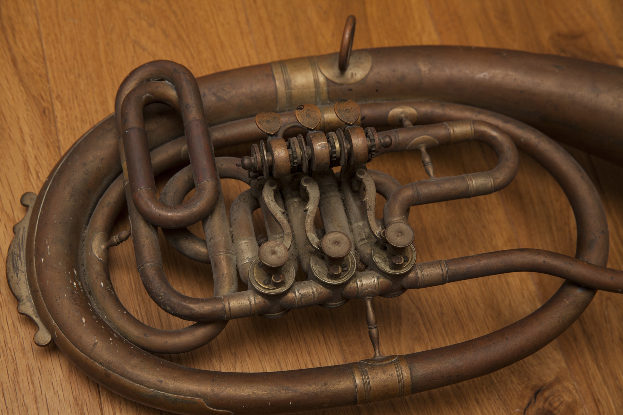 Mittlerweile ist es geputzt und spielt sich ganz gut. Es schein ein Tenorhorn in C zu sein, besitzt jedoch einen langen Hauptstimmzug für die B-Lage.