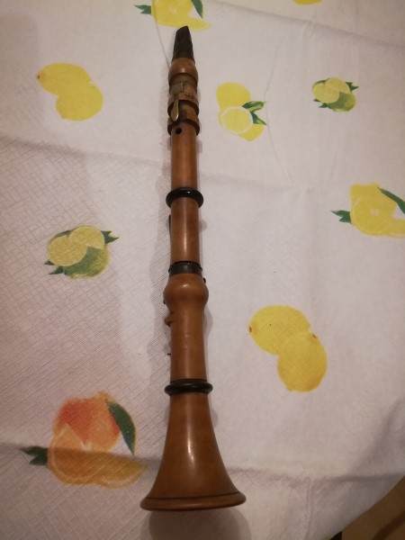 Vor kurzem hat er auf dem Flohmarkt eine Klarinette in F erstanden. Diese ist aber von der Größe etwa so lang, wie eine Es-Klarinette.