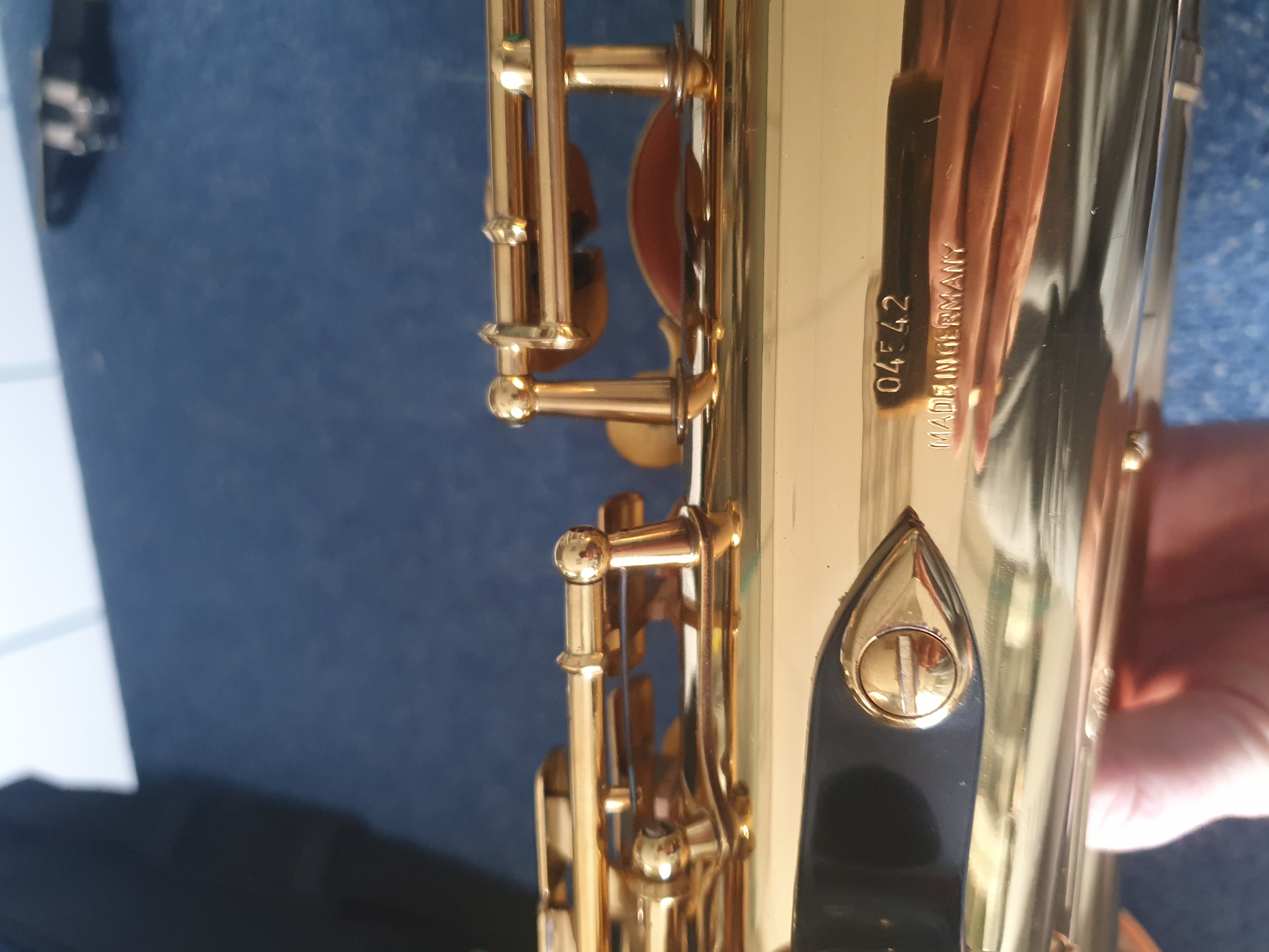 Hallo, ich habe nun endlich mein Tenorsaxophon zurück bekommen und habe Fotos vom blauen Label sowie der Seriennummer gemacht. Die Seriennummer lautet 04542.tobi.music hat geschrieben: ↑Di 07. Nov 2023, 11:19Hallo,