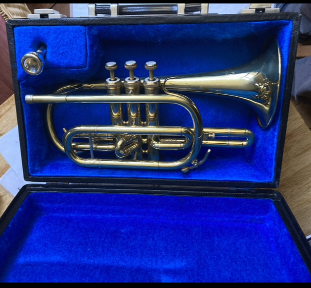 es handelt sich dabei um das B-Kornett Modell-Nr. 141, kurze Bauart. Der Schallstückdurchmesser dürfte 12,0 cm betragen?