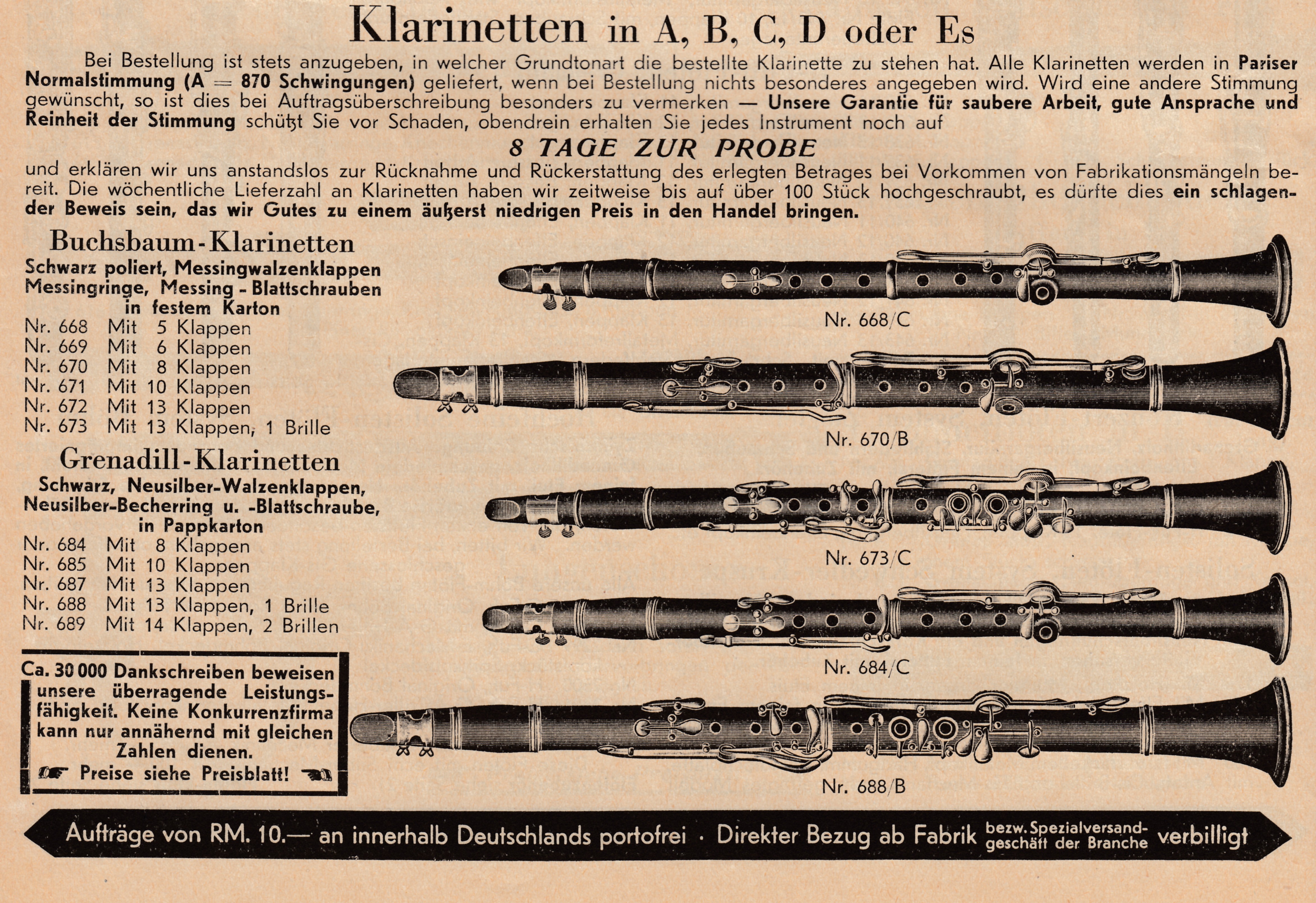 zu dieser Klarinette habe ich in einem alten Prospekt der Firma Meinel & Herold aus ca. 1930 erfahren, dass es sich um das Modell 668 handelt.