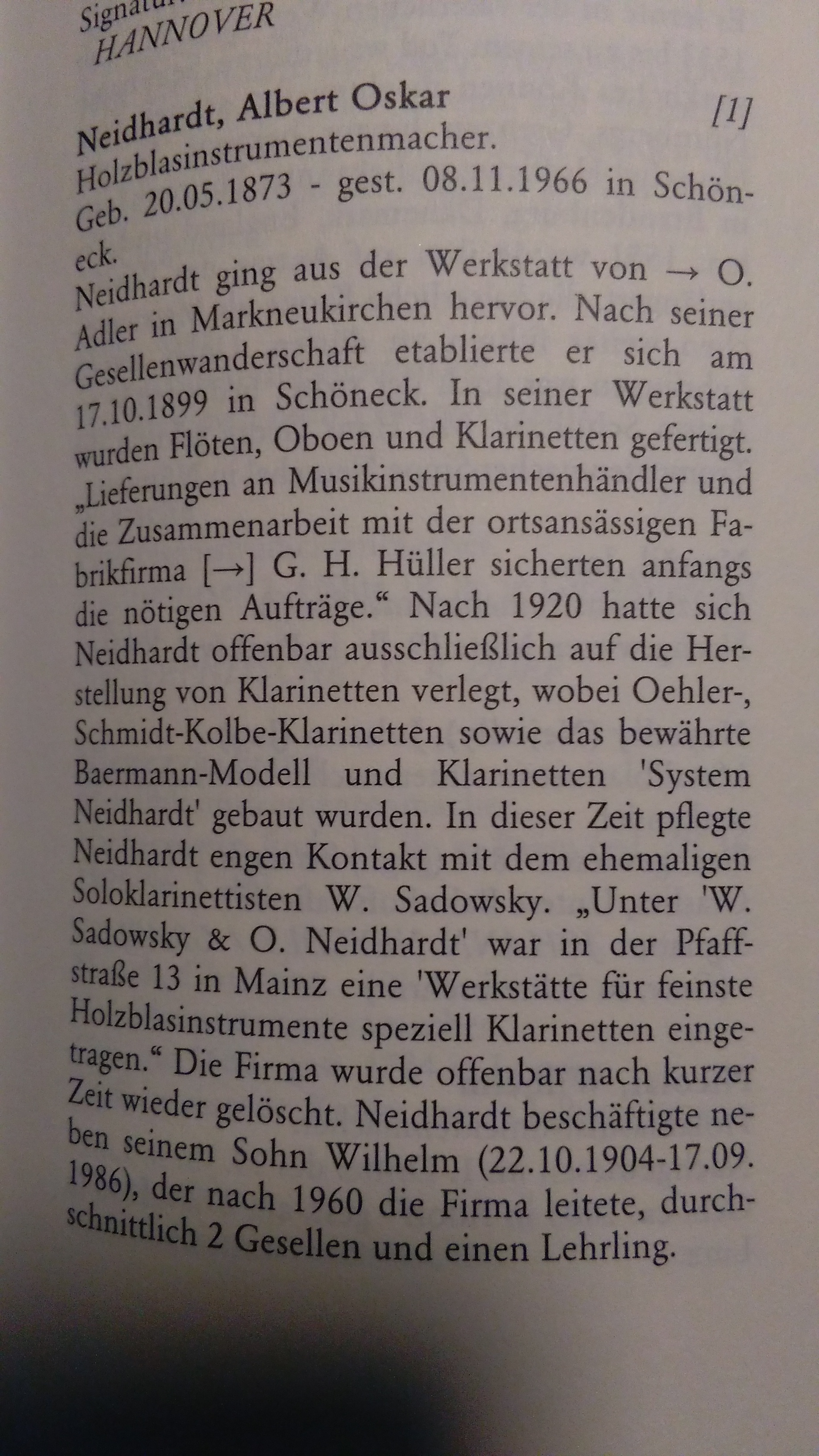 . Das Neidhardt-Klarinetten gut sind weiß ich bereits, schade, dass es so wenig Informationen über Oskar Neidhardt gibt.