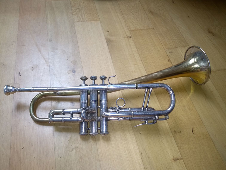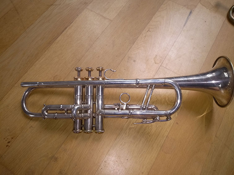 Alles aus dem Vogtland. Eine sehr coole Dizzy Style Trompete von Wunderlich, den Becher hab ich vergoldet, eine wie neu Trompete aus demselben Haus ein Wunderlich Kornett und etwas sehr altes.