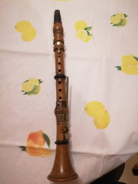 Vor kurzem hat er auf dem Flohmarkt eine Klarinette in F erstanden. Diese ist aber von der Größe etwa so lang, wie eine Es-Klarinette.