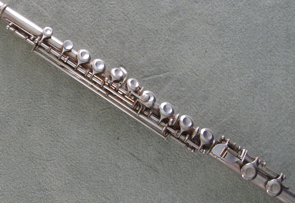 Ich habe Bilder von einer Vollsilber-Hammerschmidt mit quasi identischer Mechanik in meinem Archiv. Unterschied: gezogene Tonlöcher, die gerollt worden sind. Und die Tasten sind ohne Rille. Auch keine Buchse zum Einschrauben des T-förmigen Abstandhalters. Ansonsten passen alle Features.