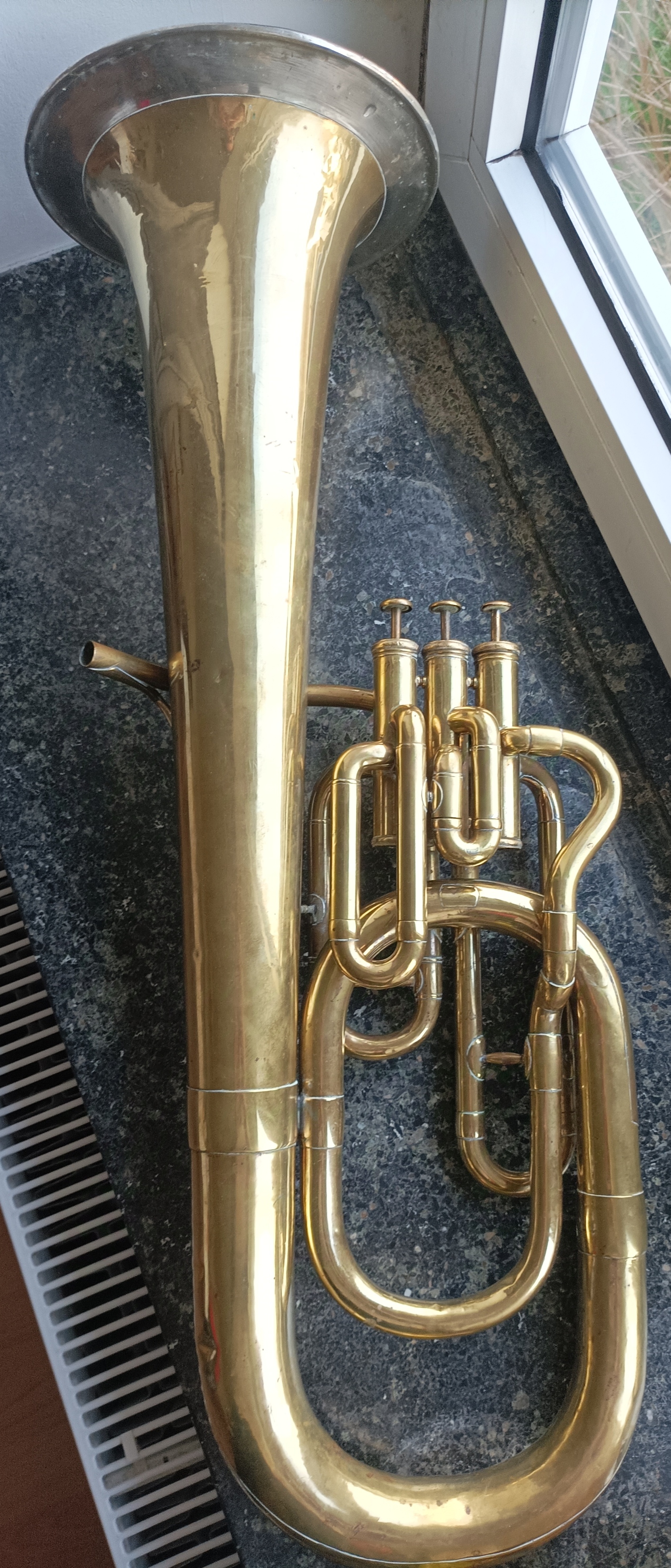 ich habe ein älteres Euphonium (?), siehe Foto, in Bb von F. Besson Paris, welches anhand der Seriennummer ungefähr auf das Jahr 1885 datiert werden kann. Dieses hat innen im Schallbecher einen Stempel mit der Bezeichnung: A.M.&Co (siehe Foto). Denselben Stempel habe ich auch innen im Schallbecher einer Basstrompete von Ackermann & Lesser gesehen. Nun meine Frage: Kann mir jemand sagen was bzw. welcher Hersteller sich hinter diesem Stempel verbirgt? Meine Internetrecherche hatte keinen Erfolg. Von außen ist der Stempel nicht erkennbar. Man muss in den Schallbecher schauen.