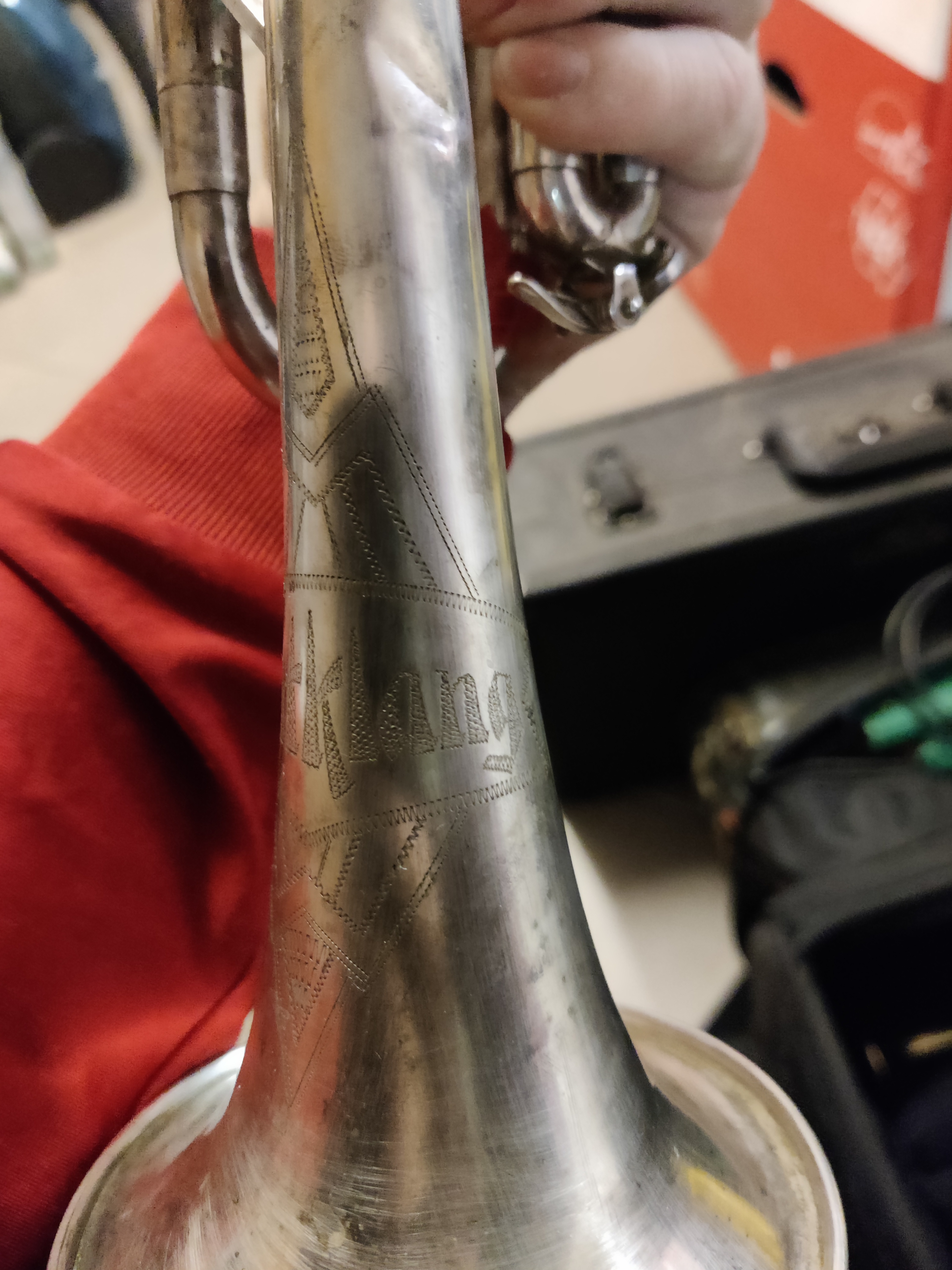 Bitte sehen Sie doch einmal die Trompete genauer an! Befindet sich im Schallstück (etwa auf Höhe der Maschine) von unten zu lesen noch eine weitere "Seriennummer"? Oder aber befindet sich in der Mundstückaufnahme / am Mundrohr noch eine Zahl, ein Buchstabe oder eine andere Art der Kennzeichnung?