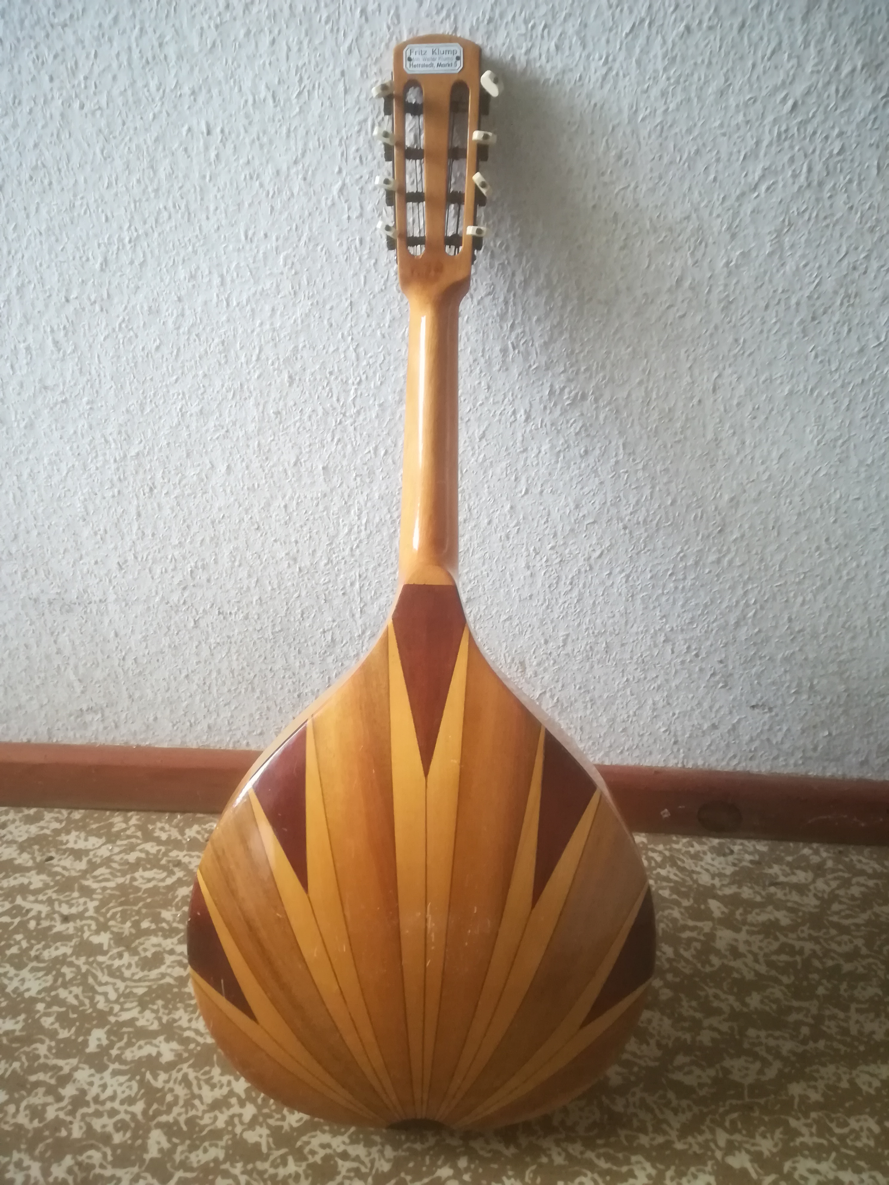 Ich sehe erst jetzt, dass da auf der Decke ein Brand-Stempel (?) eines Herstellers ist, es ist also noch keine "Musima" Mandoline, sondern offenbar ein Vorgänger eines privaten Betriebes, der wahrscheinlich dann in den 60ern in die Musima eingegliedert wurde. Den Stempel auf der Decke kann ich momentan nicht entziffern auf dem Foto.