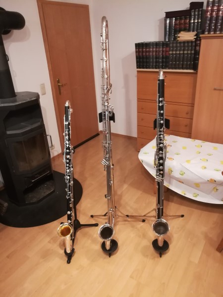 seit einigen Wochen bin ich stolzer Besitzer einer Selmer Kontraaltklarinette in Es bis Tief Es und einer Leblanc 342 Kontrabassklarinette in B bis Tief Es.