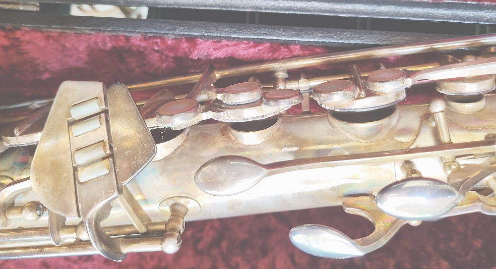 Die Tonlöcher scheinen aufgelötet zu sein - in Ermangelung entsprechender Zieh-Werkzeuge hatte auch Keilwerth nach der Vertreibung die ersten Saxofone so gebaut. Das passt also in die erste Zeit nach dem Krieg.