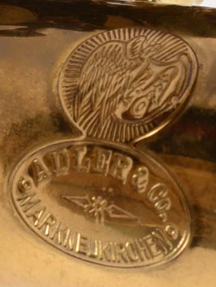 hab mein Archiv durchgekramt. Hier der Beweis, dass das Eingangslogo von Oscar Adler war. Die beiden Logos sind zusammen auf einem Sax von Mitte der 10er Jahre des letzten Jahrhunderts (ca. 1915 +/-).