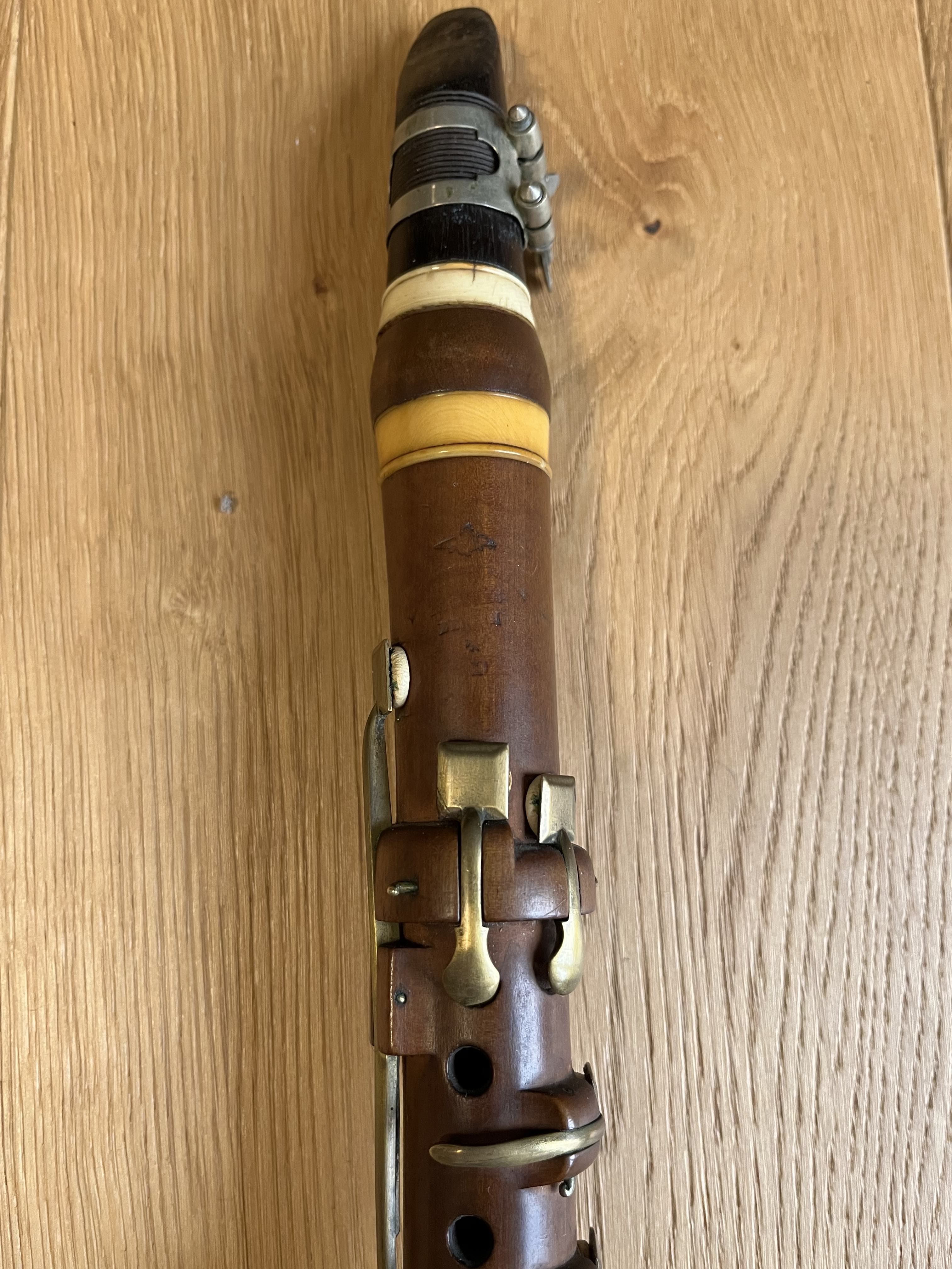 ich habe kürzlich zwei historische Klarinetten - vermutlich aus Buchsbaum - erstanden (siehe Bilder). Laut Stempel / Gravur handelt es sich um eine B- und um eine D-Klarinette. Leider kann ich auf den Klarinetten aber nicht erkennen, von welchem Hersteller die Instrumente sind.