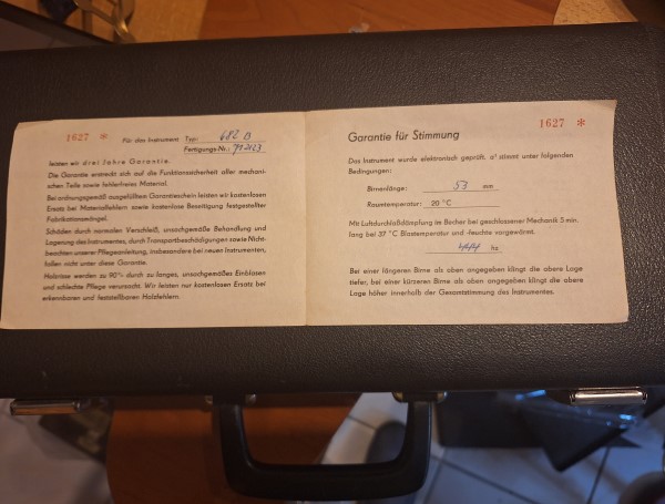 Einfacher wurde es in der Herstellung durch den austauschbaren Becher („Baukastensystem“). Und die 682 konnte man auch beim Marschieren spielen, wenn man eine passende Marschgabel hatte (als Befestigung kein Ring, sondern eine Art Zwinge). Das musikalische Ergebnis stand aber in meinen Ohren einer „richtigen“ Becherklappe um einiges nach.