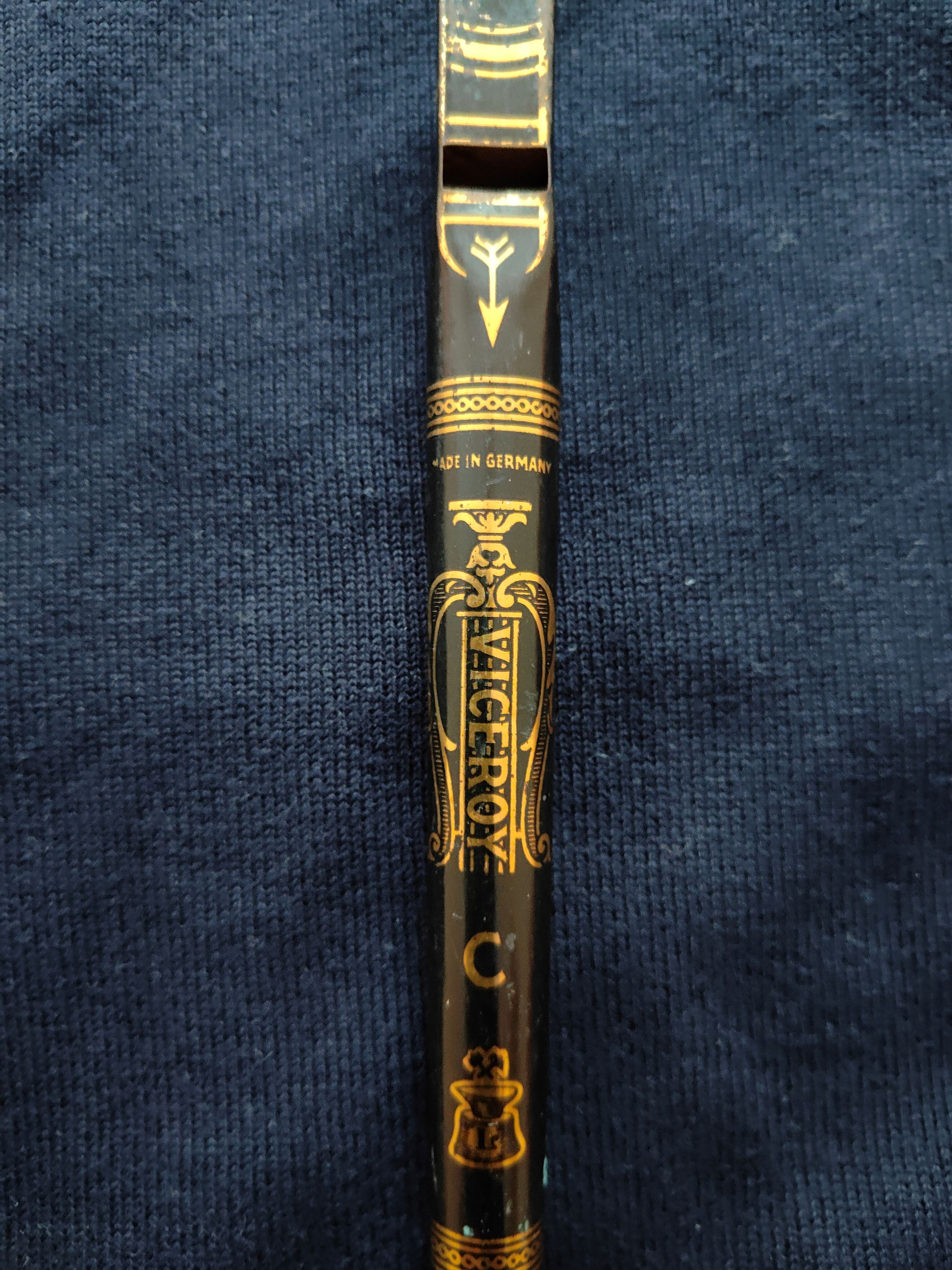 ich habe bei mir 2 Flöten von meinem Großvater gefunden. Das vermutliche Alter dürfte etwa 90 - 100 Jahre sein. Mich würden die Hersteller und das Alter interessieren. Vielleicht kann mir jemand helfen. Die 1. Flöte ist ein Metall/Blechflöte "Viceroy", Made in Germany. Die 2. ist eine Okarina Flöte mit einem unerkenntlichen Zeichen am Mundstück.