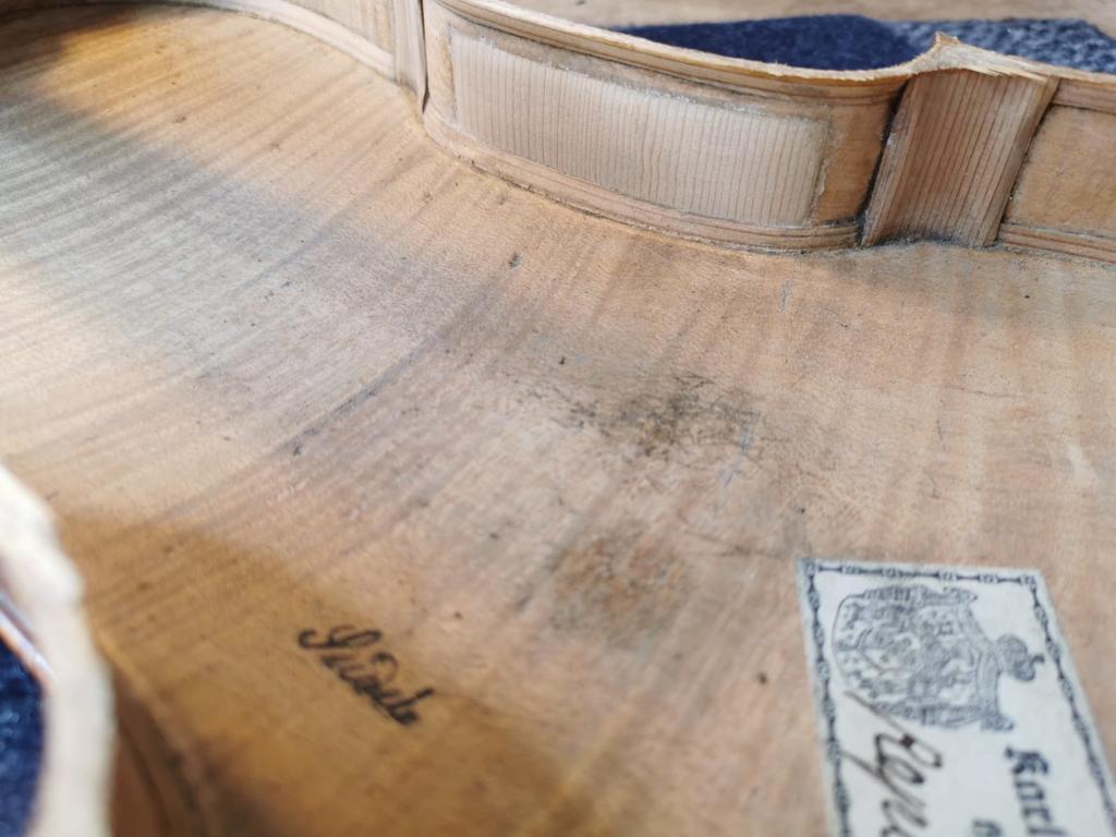 Was ich aber zu erkennen glaube, ist eine solide, saubere und zum Alter passende Arbeit. Und wenn der Ton ordentlich ist, was will man denn dann noch mehr? Der Stimmriß ist drin, ob Wilhelm Christian Seidel das Instrument nun gebaut hat oder nicht.