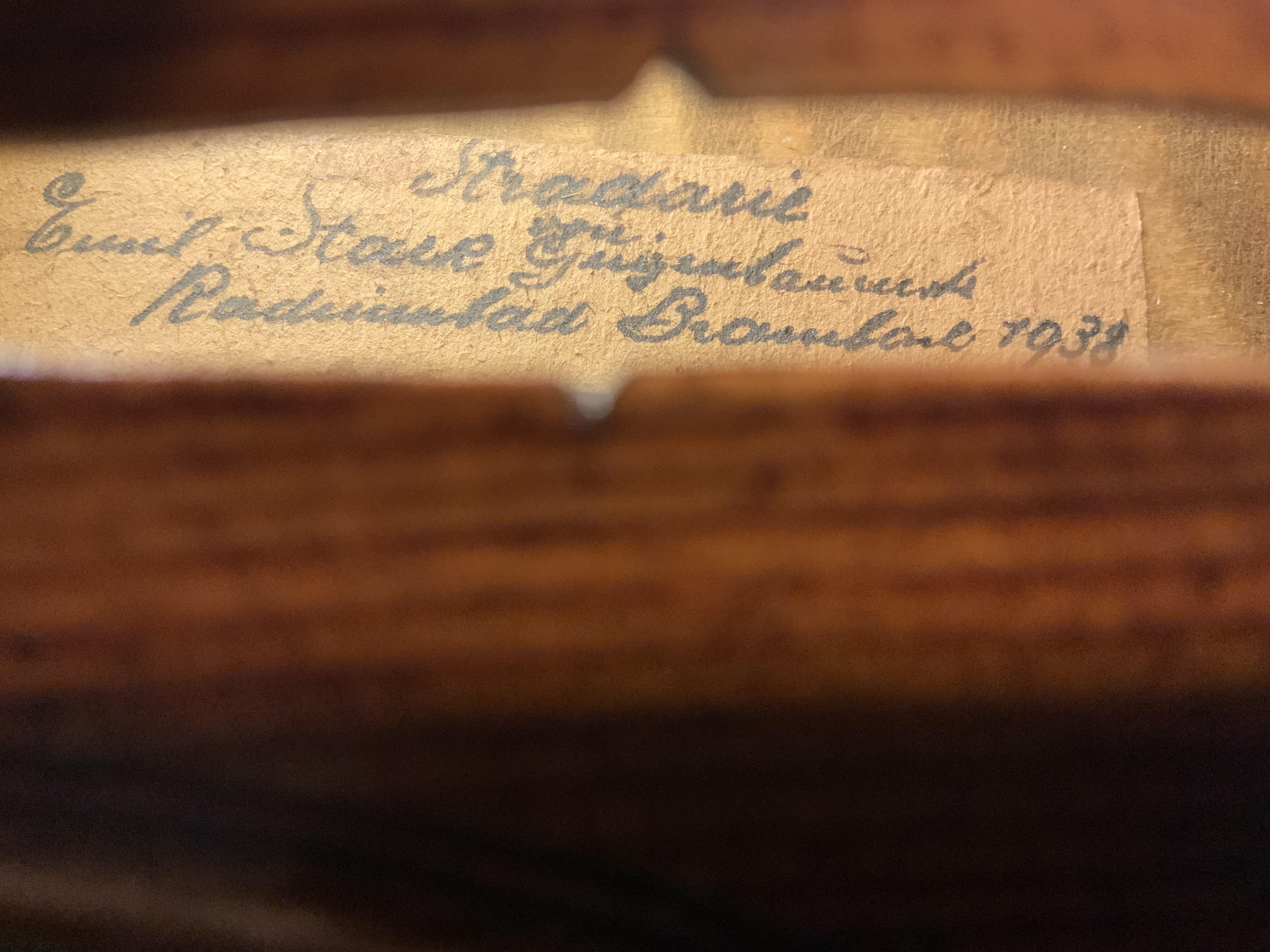 habe eine Geige aus Bad Brambach auf dem Tisch. Der Zettel sieht gut aus, leider habe ich ihn so noch nie gesehen und kann den Namen auch nicht