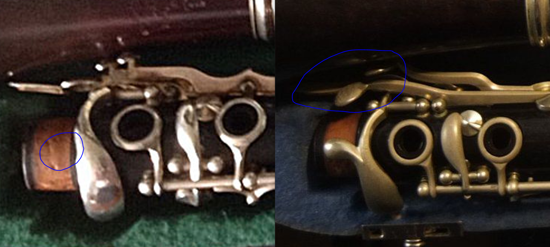 Zum Gis-Drücker: für mich sieht das so aus, als ob der Zusatzhebel bei der SN 15002 entfernt worden ist. Ich kenne überhaupt keine Uebel Klarinette, die dieses Zusatzhebelchen nicht hat. Und der Gis Drücker sieht bei 15002 sehr unvollkommen aus. Daher meine Vermutung.