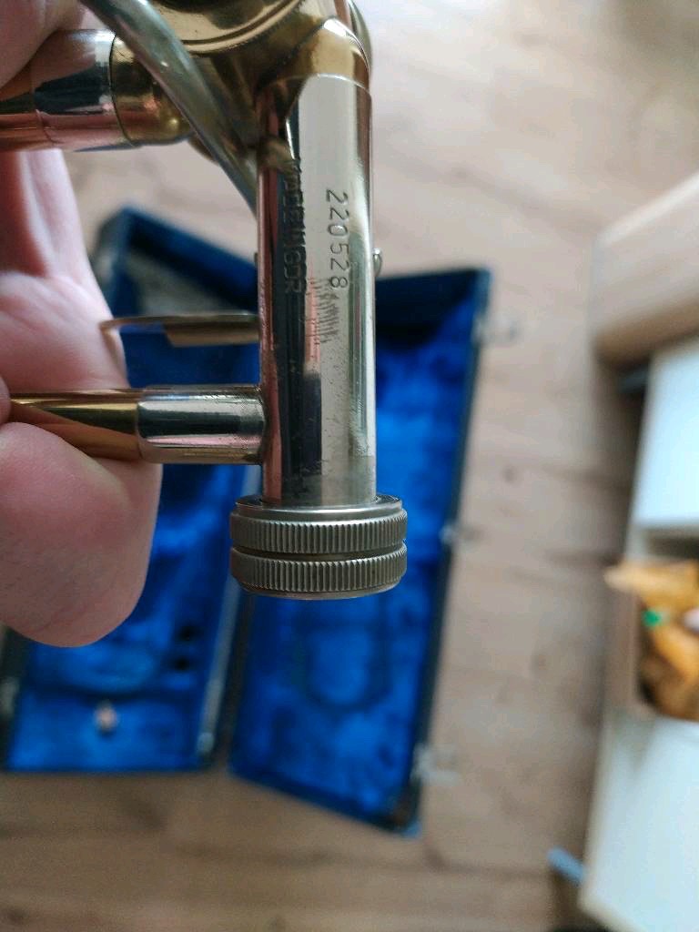 bitte entschuldigen Sie die verspätete Antwort. Betreffende Posaune wurde im Jahr 1986 angefertigt, sie ist unter der damaligen Modellbezeichung 3055 viele Jahre in dieser Form gebaut worden.