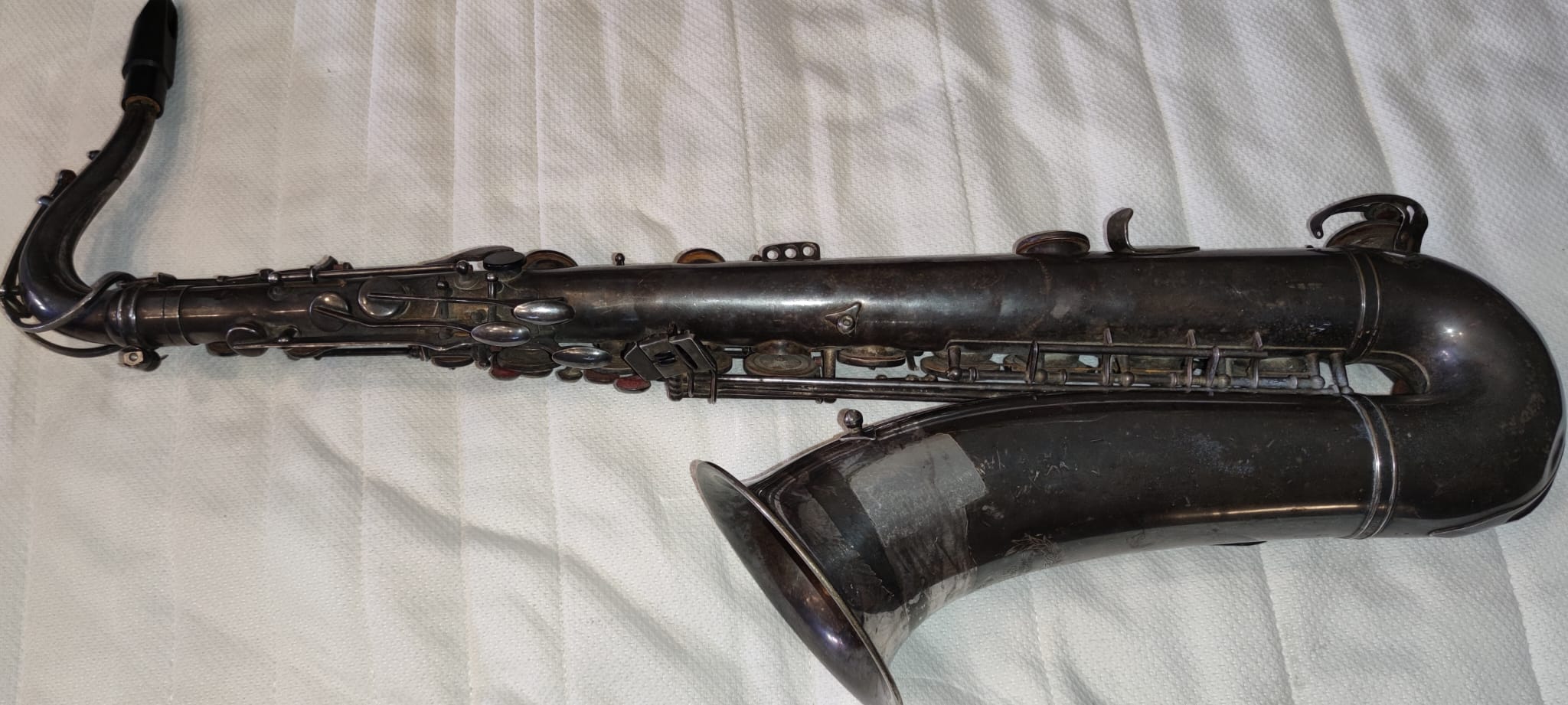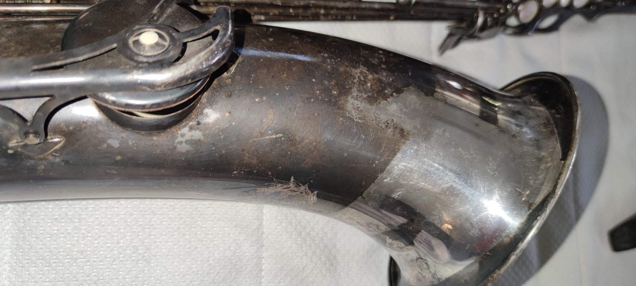 Zur Versilberung: Das Saxophon ist versilbert. Es ist sehr wahrscheinlich, dass dieses Finish auch von Beginn an vorhanden war. Nur in den seltensten Fällen wurde ein Instrument mal entnickelt und nachträglich versilbert. Eigentlich passiert so etwas fast nie.