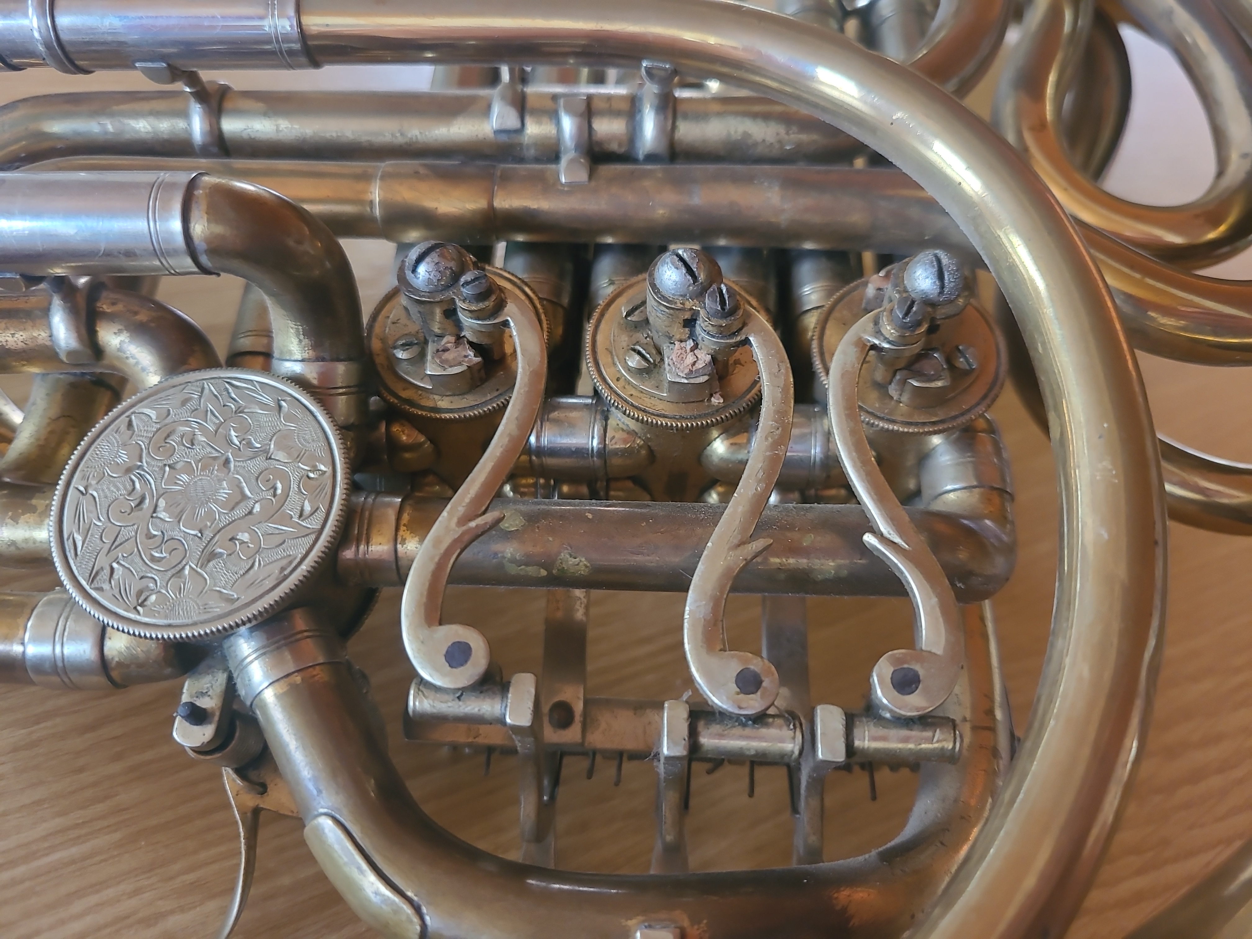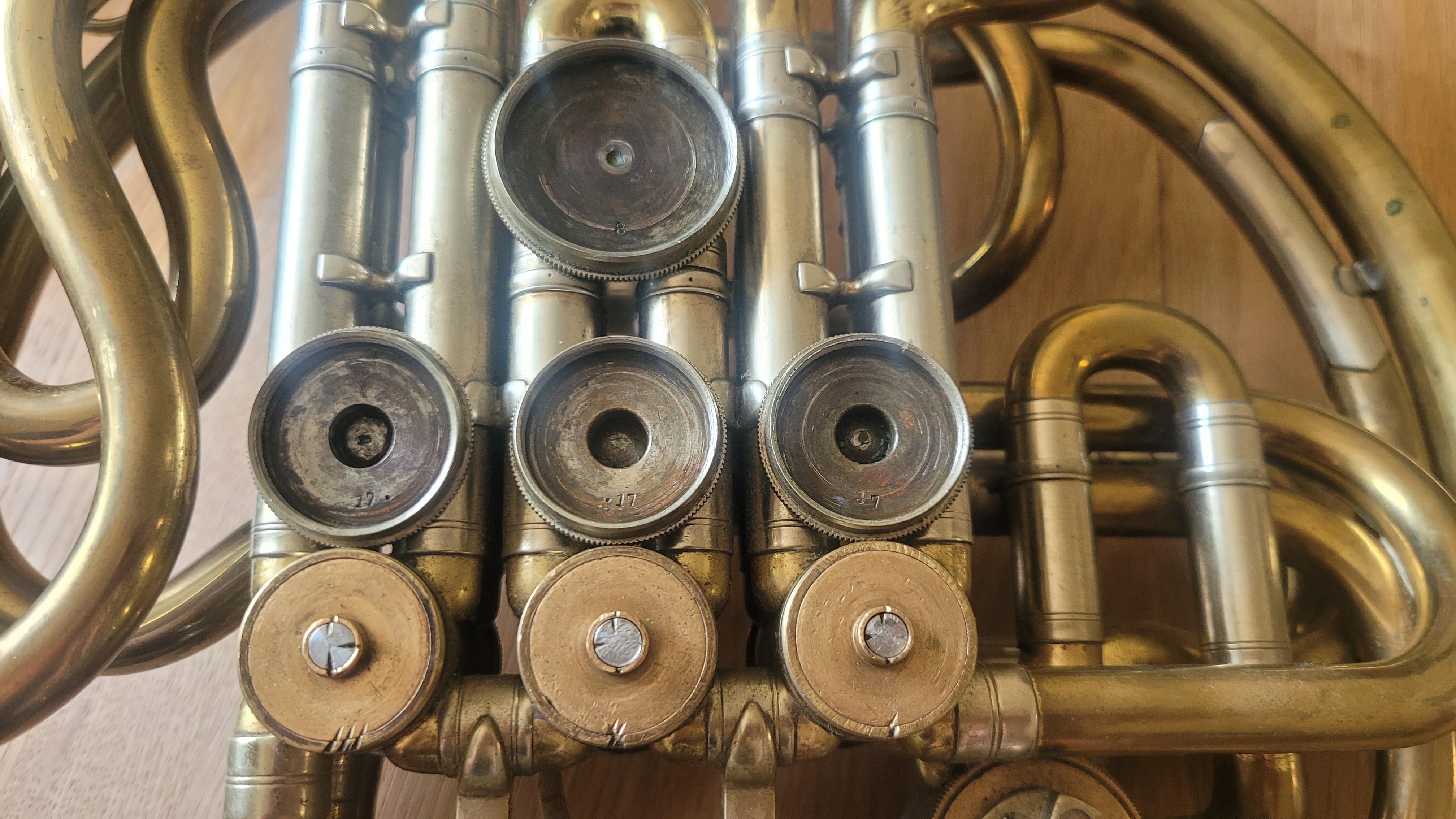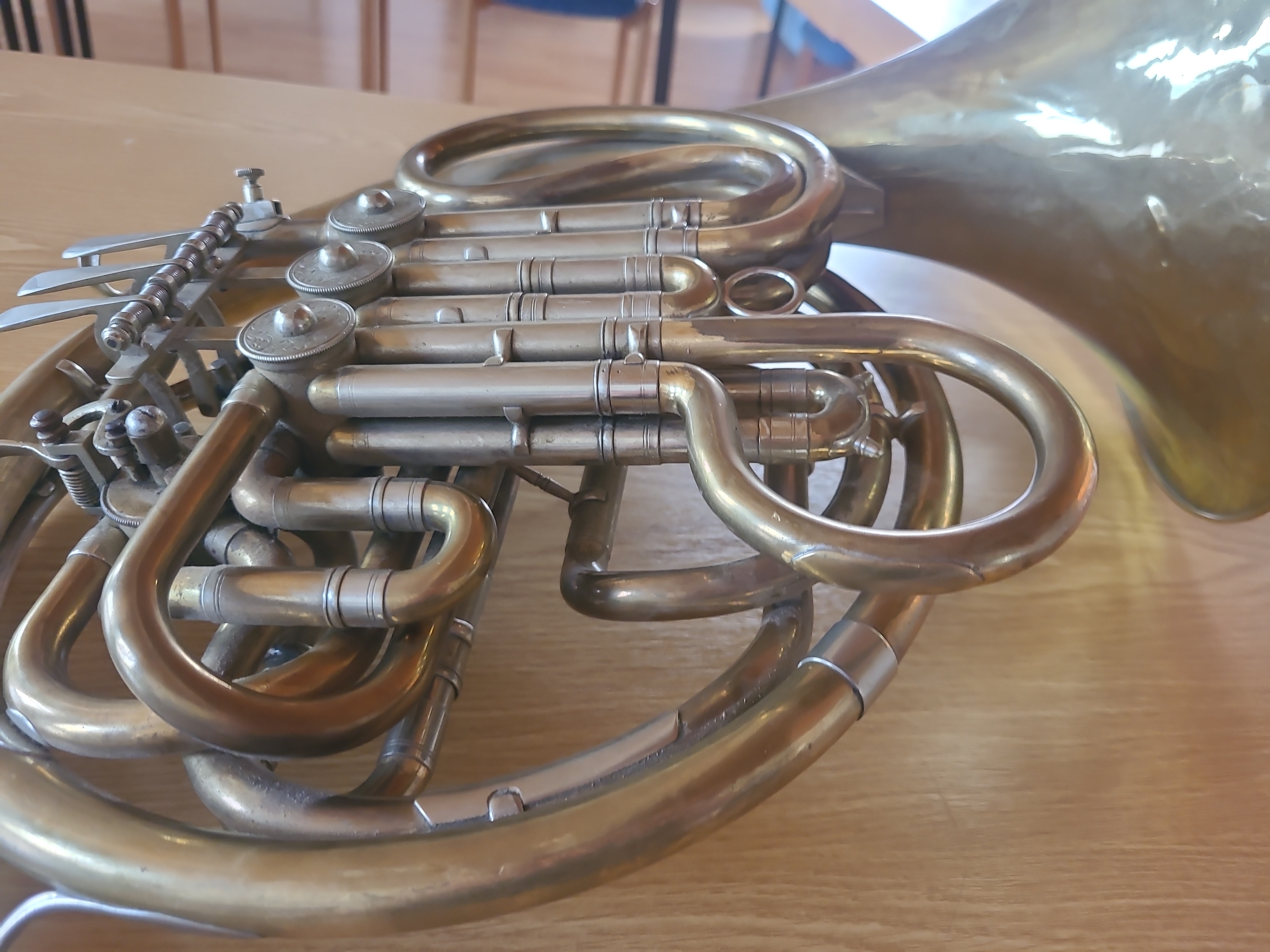ich habe vor kurzem das in den angehängten Bildern dargestellte Doppelhorn auf einem Flohmarkt gekauft. Der besitzer konnte mir leider nicht sagen, um welches Modell und von welcher Firma es sich handelt. Leider gibt es diesbezüglich auch keine Gravierungen auf dem Instrument. Lediglich Schlagzahlen an einzelnen Bauteilen. Ich würde mich sehr darüber freuen, wenn Sie mir diesbezüglich weiterhelfen könnten und vielleicht auch eine Einschätzung zum Alter machen könnten.