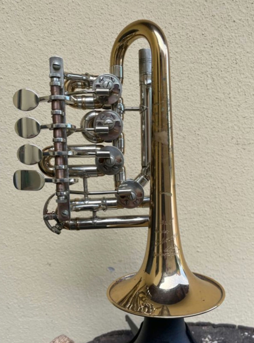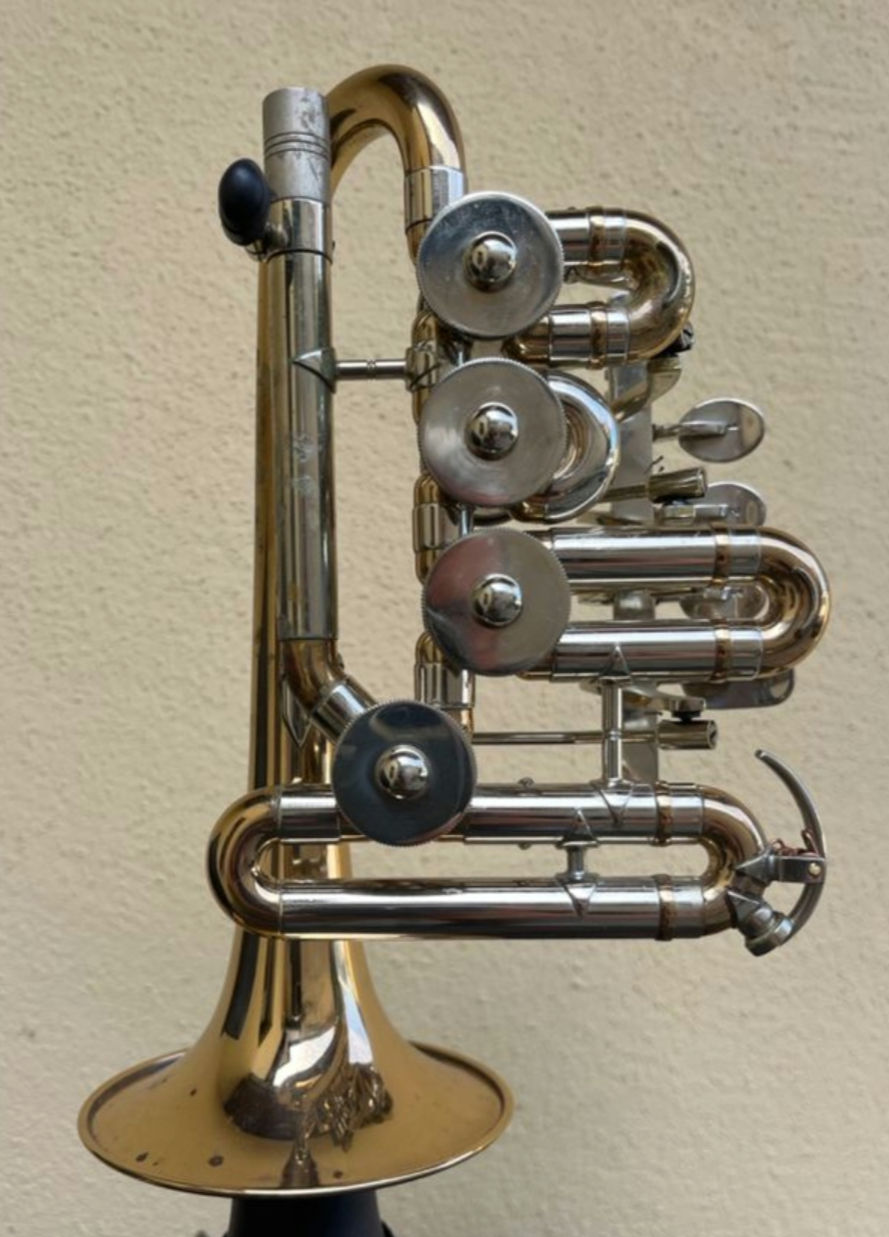 Ich bin seit kurzem im Besitz einer Meister J. Scherzer/Rino High‑C Drehventil Piccolotrompete, heute wohl aktuell entsprechend des Modell's B&S J. Scherzer 8110‑L.