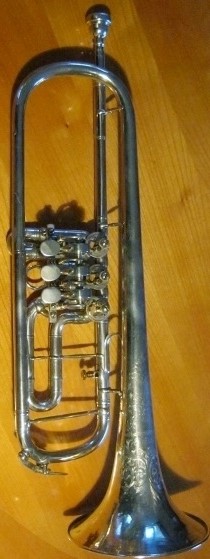 mein 13-jähriger Sohn Paul lernt Trompete. Von einem älteren Herren aus unserem Dorf haben wir im Vorfeld eines Flohmarktes eine Trompete gekauft. Er habe die von seinem Onkel, der in der Vorkriegszeit im Militär Musik gespielt hat. Wir sind aus der Region Hannover / Braunschweig. Ein Mitglied aus dem Posaunenchor hat die Trompete in Schuss gebracht. Sie spielt sich nicht sehr leicht - was auch an Paul liegen mag; soll aber einen sehr schönen hohen Klang haben. Auf dem Trichter der Trompete ist eine schöne Ziselierung. Dazu steht der Schriftzug "W. Leonhardt Instrumentenmacher Erfurt". Unter den Ventildeckeln sind die Zahlen 22, 23 und 24 eingestanzt. Auf dem Mundstück steht JK 206-3. Zu Leonhardt lässt sich googlen, dass der in Markneukirchen gelernt haben soll. Da haben Sie doch bestimmt einige Infos.
