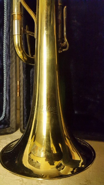 Die Trompete ist goldfarben mit silbernen Applikationen. Sie hat einen oben Fingerhaken, unten einen Trigger mit Ring über Hebel am dritten Ventilzug, nicht am ersten und keinen Sattel am ersten Ventilzug. Das mittlere Ventil trägt die Gravur N374. In die Buchse für's Mundstück ist die Nummer 180314 graviert. Der Durchmesser des Trichters beträgt 12cm. Weltklang steht als perforierte Schrift auf dem Trichter, ohne weitere Grafiken. Sie sieht optisch sehr gepflegt aus, zu den klanglichen Qualitäten kann ich leider nach 30 Jahren Spielpause (früher Tenorhorn) noch nichts sagen. Ein paar Bilder hänge ich noch als 'Anschauungsmaterial' hier an.