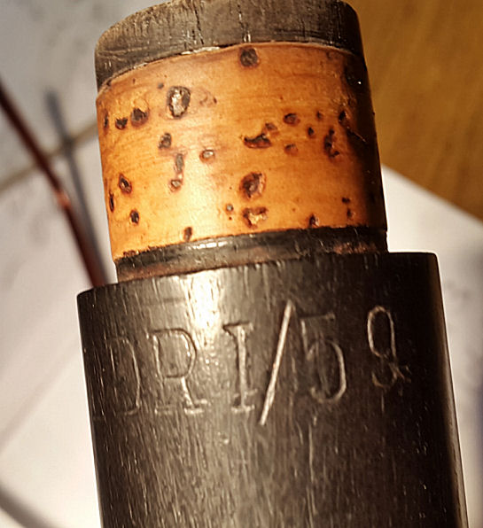 Eine Klarinette von Rud. Gottsmann zeigt eine seltsame Gravur in ca. 6mm hohen Ziffern, und zwar: