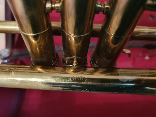 Sie haben richtig recherchiert, es ist eine im Werk I in Markneukirchen gebaute Trompete. Es müsste sich um das einfache Modell 134 oder 135 handeln, welches sich aber nur durch eine "enge" bzw. eine "weite" Mensur unterscheidet, was aus der Ferne natürlich nicht möglich ist.
