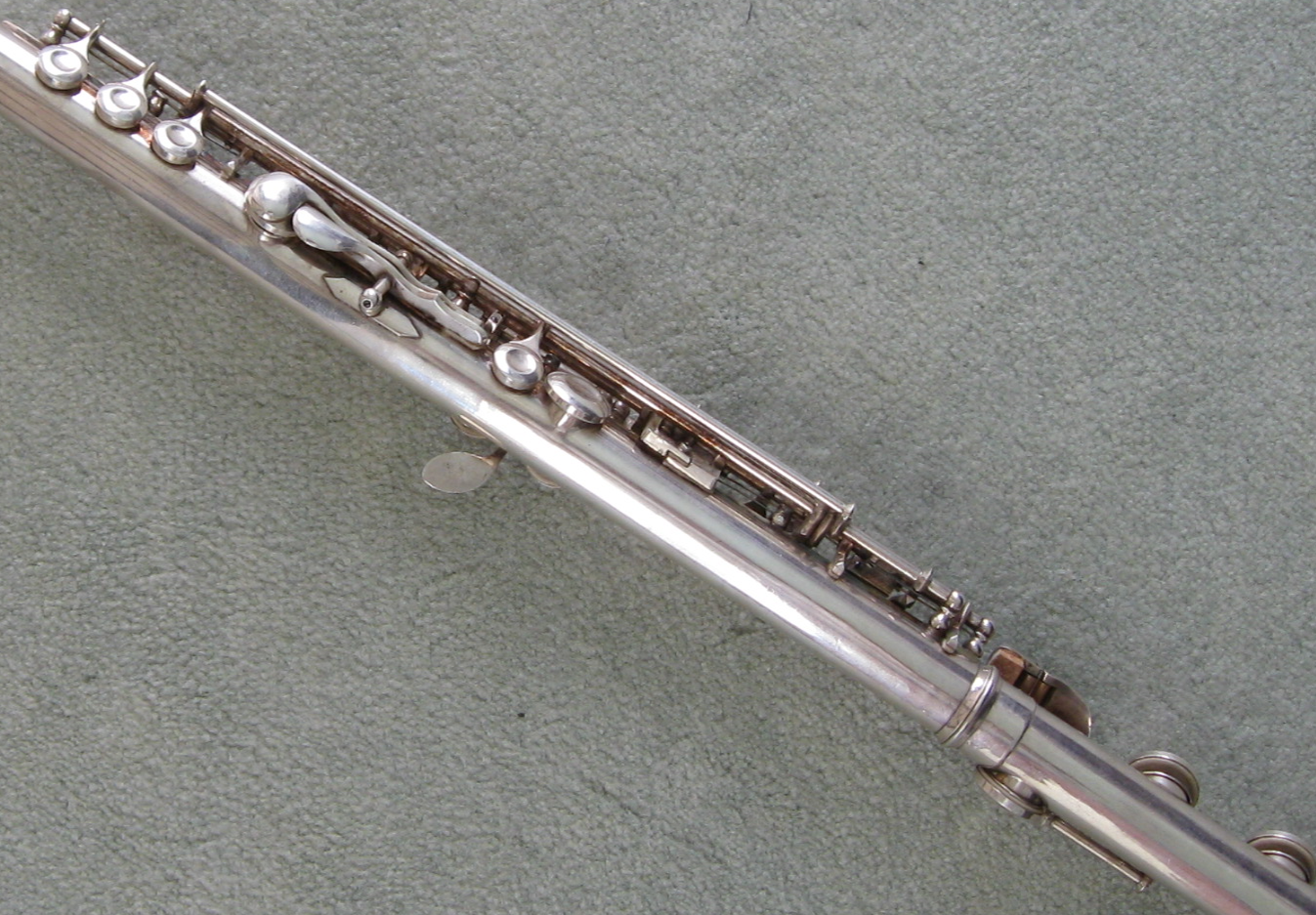 Ich habe Bilder von einer Vollsilber-Hammerschmidt mit quasi identischer Mechanik in meinem Archiv. Unterschied: gezogene Tonlöcher, die gerollt worden sind. Und die Tasten sind ohne Rille. Auch keine Buchse zum Einschrauben des T-förmigen Abstandhalters. Ansonsten passen alle Features.