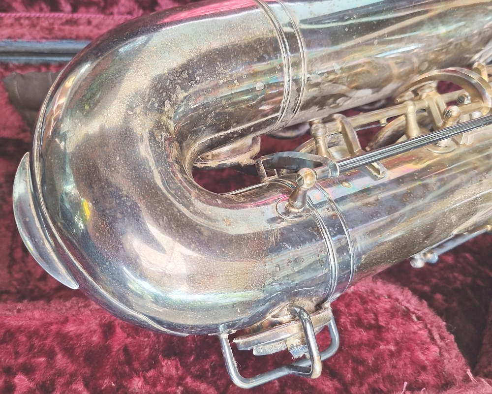 Die Tonlöcher scheinen aufgelötet zu sein - in Ermangelung entsprechender Zieh-Werkzeuge hatte auch Keilwerth nach der Vertreibung die ersten Saxofone so gebaut. Das passt also in die erste Zeit nach dem Krieg.