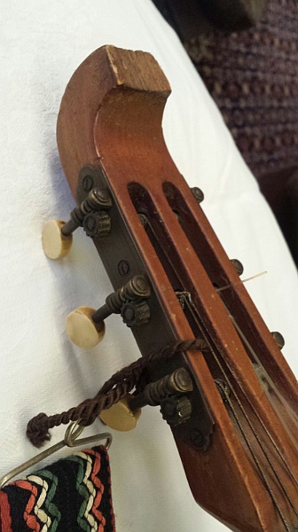 Bestimmt findet sich ein Gitarrenmacher, der zu der Lautengitarre (?) etwas sagen kann. Mein Heimatgefühl sagt mir, das Instrument ist im Vogtland entstanden. Aber ich bin ja nur Geigenmacher und kann da völlig daneben liegen.