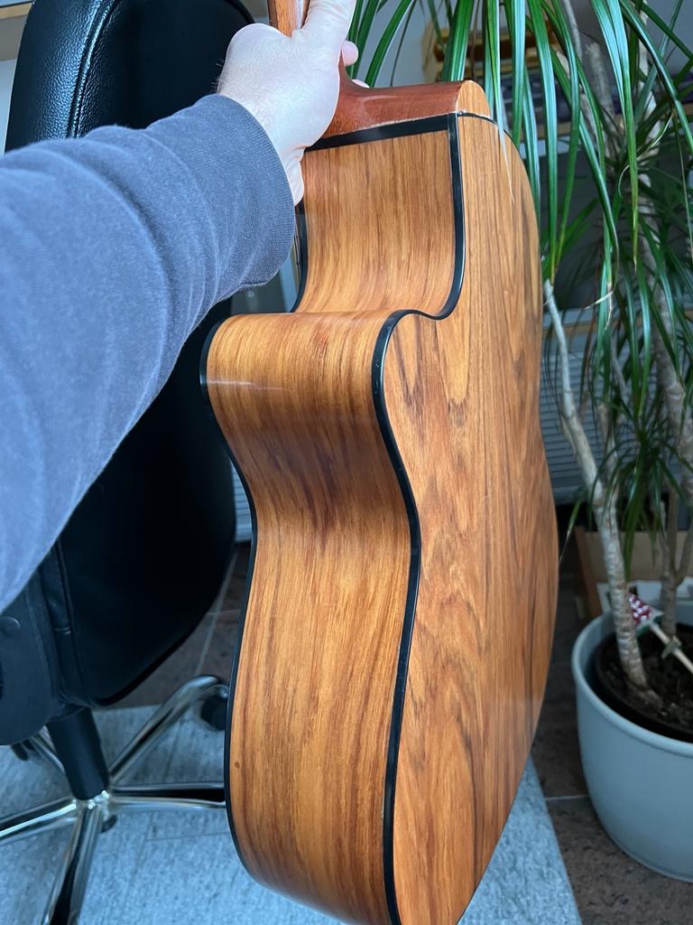 Ein Bekannter hat kürzlich eine sehr schöne MZ 22 mit Cutaway erstanden. Die MZ 22 ist mir ein Begriff, aber das sie auch mit Cut gebaut wurde ist mir völlig neu. Laut Geschichte vom Verkäufer soll sie die Erstbestitzerin einst direkt von Bodo Bärwinkel bekommen haben. Damit lässt sich das Baujahr schonmal ungefähr eingrenzen. Weiß sonst noch jemand etwas dazu? Wurde die tatsächlich so im Handel verkauft oder war es vielleicht „nur“ ein Muster? Anbei noch ein paar Bilder… Der Halsfuß wurde recht unsauber verleimt, ich tippe auf Reparatur oder B-Ware, konnte es bisher leider noch nicht in echt begutachten.
