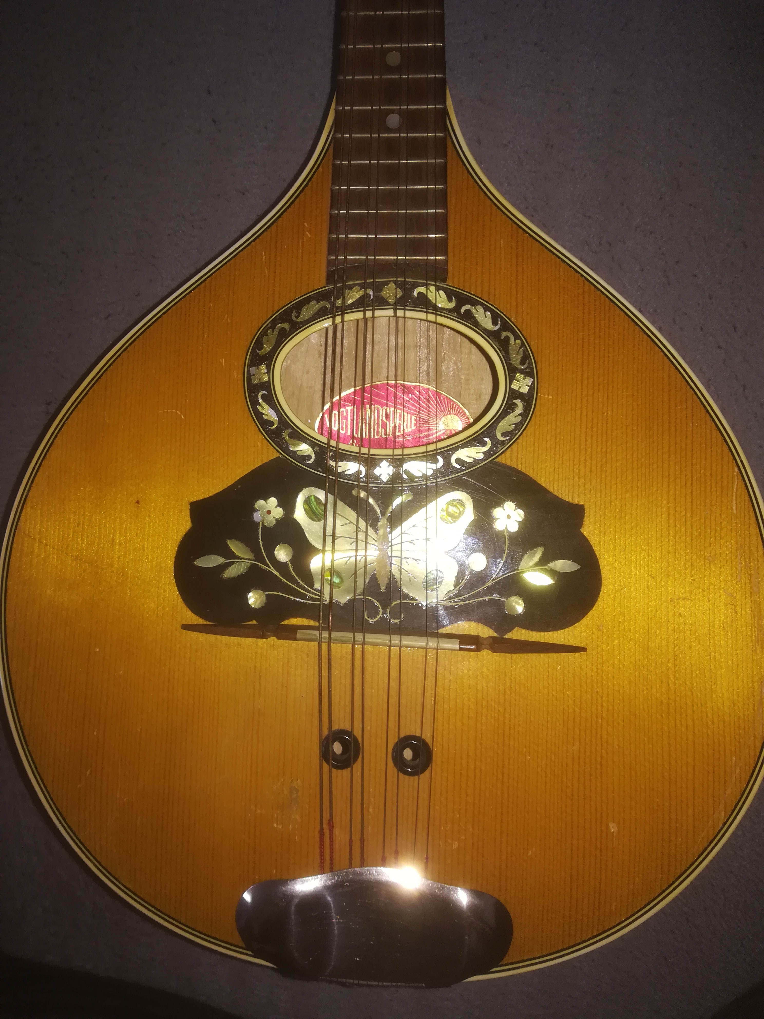 Ich sehe erst jetzt, dass da auf der Decke ein Brand-Stempel (?) eines Herstellers ist, es ist also noch keine "Musima" Mandoline, sondern offenbar ein Vorgänger eines privaten Betriebes, der wahrscheinlich dann in den 60ern in die Musima eingegliedert wurde. Den Stempel auf der Decke kann ich momentan nicht entziffern auf dem Foto.