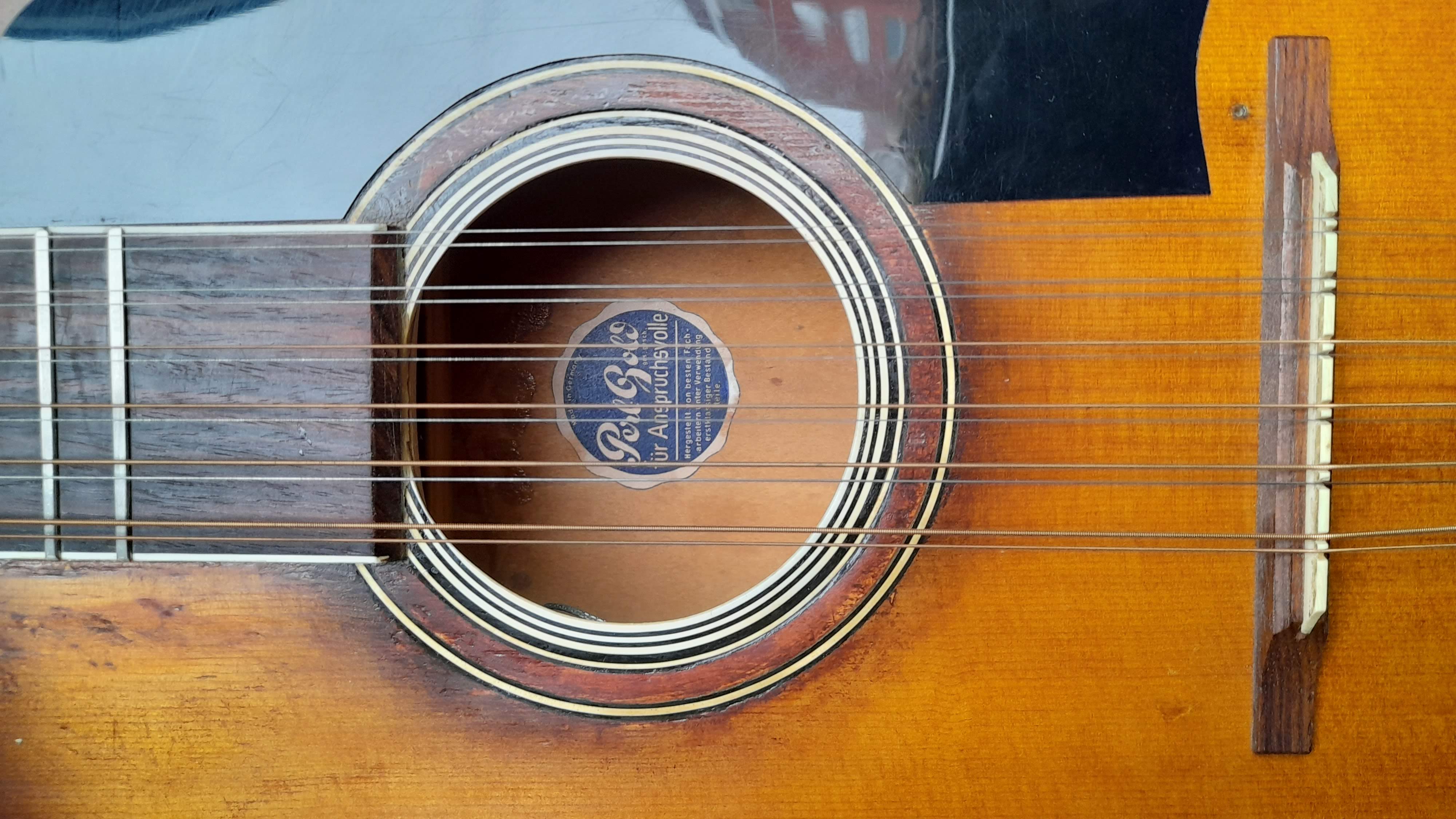 Ich besitze vor einigen Monaten eine ziemlich alte PerlGold Dame. Es handelt sich von einer schöne 12saitige Gitarre mit floating Steg und Saitenhalter. Ein paar Fotos sind hierunter hinzugefügt.