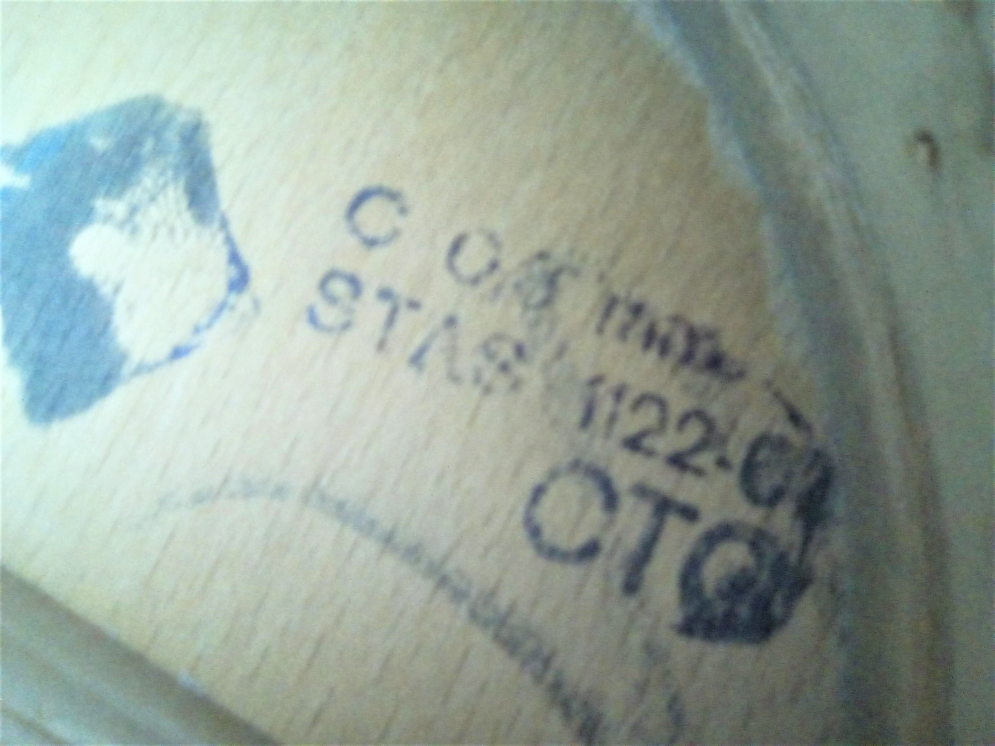 Ich hatte auch eine Stempelmarke unter der Decke gefunden, die ich eigentlich nicht identifizieren konnte. Ich gehe davon aus, dass sie keine weitere Information über das Herstellungsdatum oder das Gitarrenmodell gibt, aber was bedeutet sie dann? Stammt die Marke vielleicht aus einem Holzhändler, der eventuell mit den Gropps damals gearbeitet hatte?