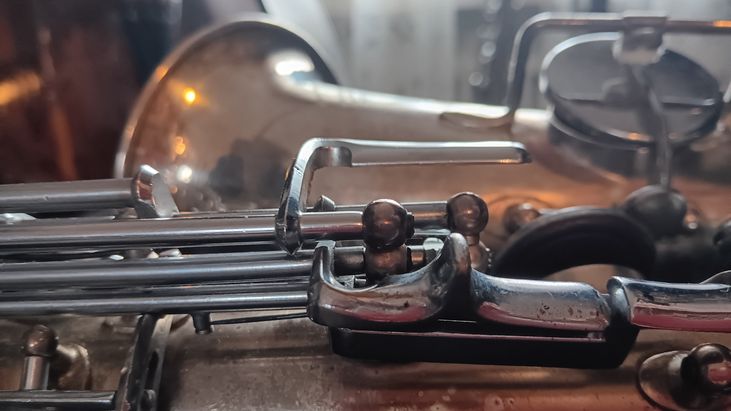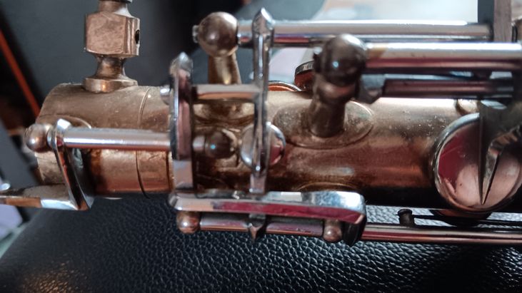Ich besitze das Saxophon, aber kann mir keinen Reim auf den Hersteller machen. Dabei ist der Tisch allein so markant... Ich bin sicher, dass ich das schon bei einem anderen Instrument gesehen habe.