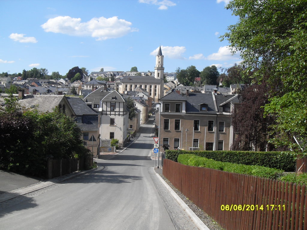 Blick vom Kirchsteig (Straße westlich neben dem Museum) Richtung Stadt