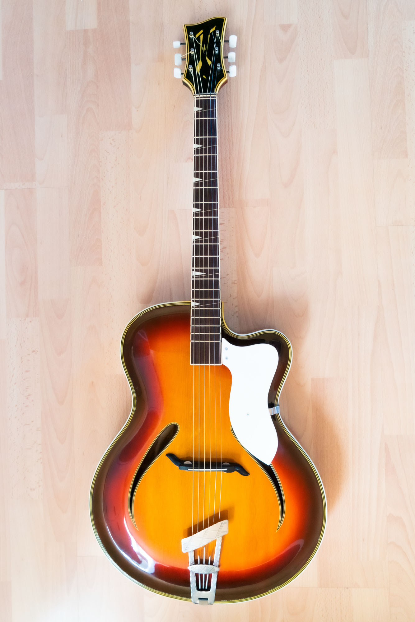 Hallo habe seit einiger Zeit eine Gitarre in meinem Besitz von der ich gerne etwas mehr erfahren möchte. Mein Vater hat sie mir geschenkt und meint, er habe sie jetzt ca. 60 Jahre . Erstanden hat er Sie in Markneukirchen und sie ist kaum gespielt worden. Sie ist im Originalzustand, wie er sie damals erworben hat und sehr gut erhalten. Da die Gitarre keine Stempel oder Beschriftungen hat würde ich gerne wissen, ob mir jemand anhand der Bauweise Form dazu etwas schreiben kann. Den einzigen Hinweis, den ich habe, ist ein Zettel der in dem Gitarrenkoffer lag. Siehe Foto!