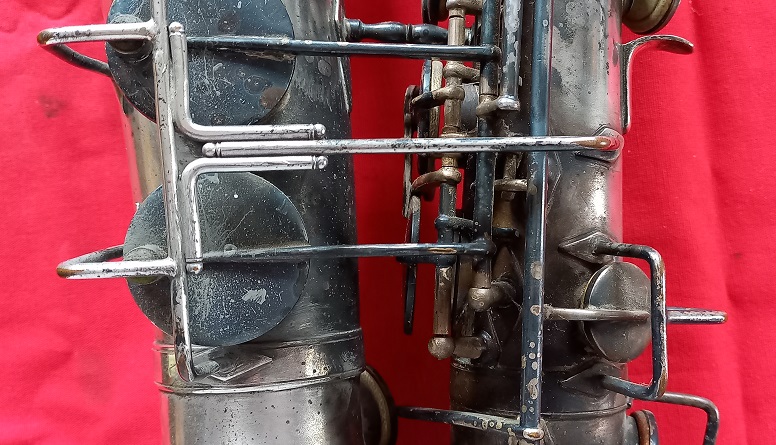 Das Saxophon mit den seitlichen „Gräten“ ist ein Bauteil einer Mortier Orgel und wurde einzeln oder im Doppel verbaut. ( Siehe Link= Museum Sinsheim) https://sinsheim.technik-museum.de/de/mortier-tanzorgel.