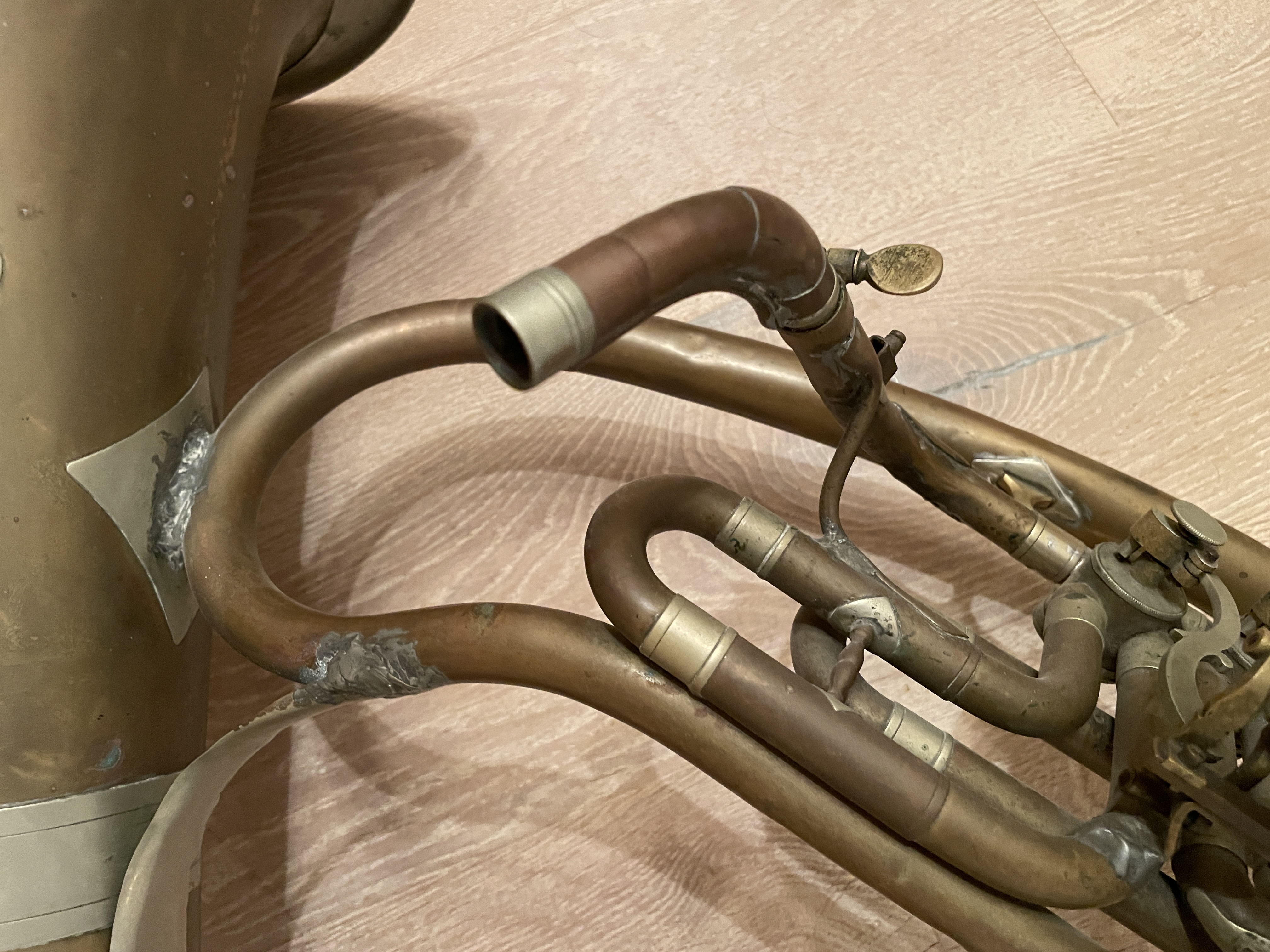 Schade, dass ich nichts über die Herkunft über das Helikon weiß. Ich habe das Instrument vor vielen Jahren von jemandem bekommen, der damit in den 60er Jahren in Siebenbürgen in einer Hochzeitskapelle gespielt hat. Mehr ist über die Geschichte dieses Helikons nicht bekannt.