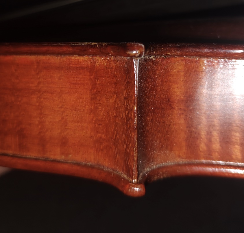 I acquired a violin recently that at first glance didn't seem to have any labels but after close inspection I found a label in the corner block. I couldn't find much references to this maker and been wondering if this violin was made by him or just repaired by him.