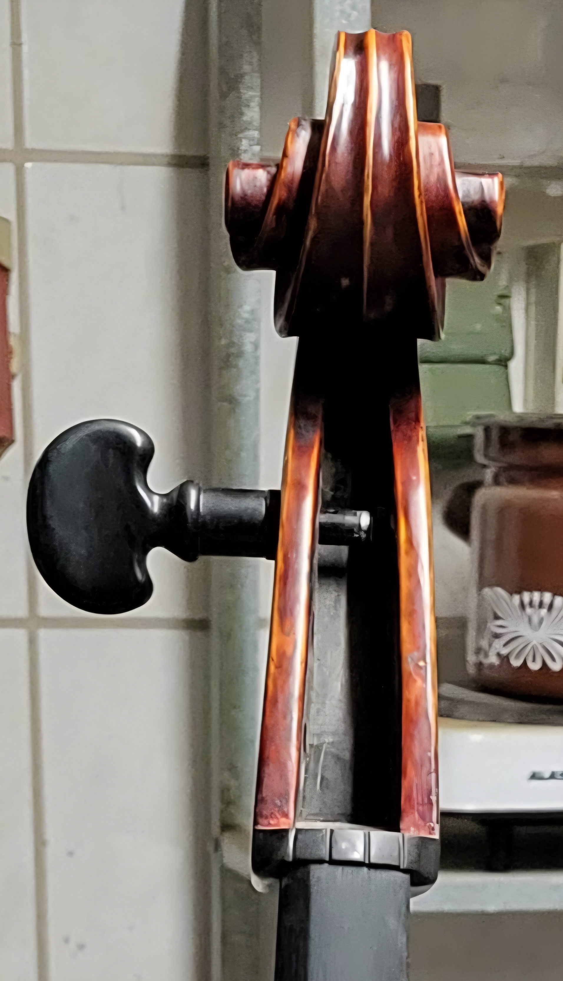 Ich habe ein Cello mit einem Zettel im Inneren.